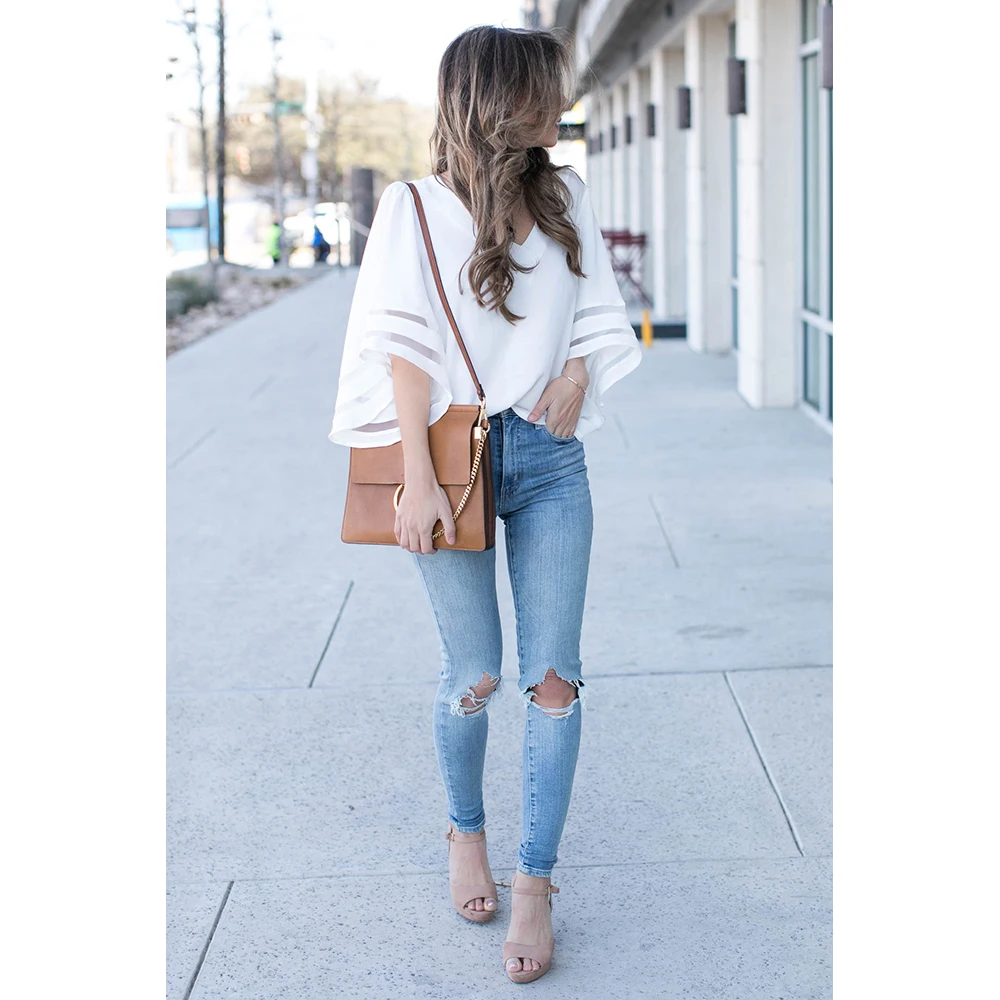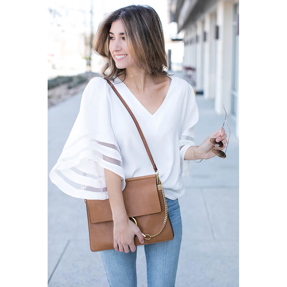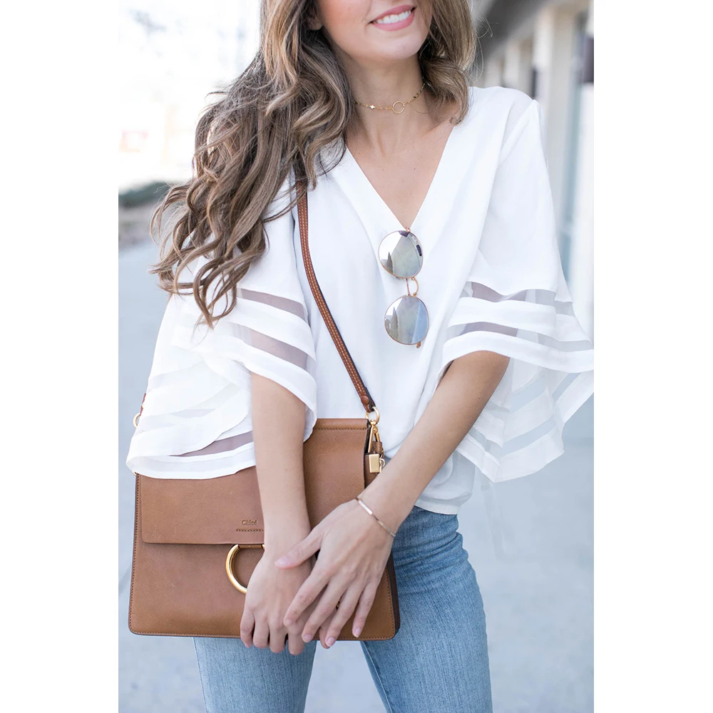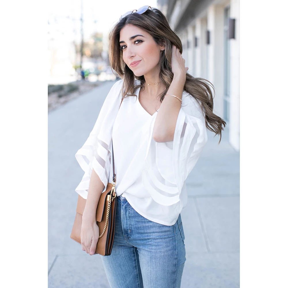 Женская шифоновая блуза с V-образным вырезом и расклешенными рукавами