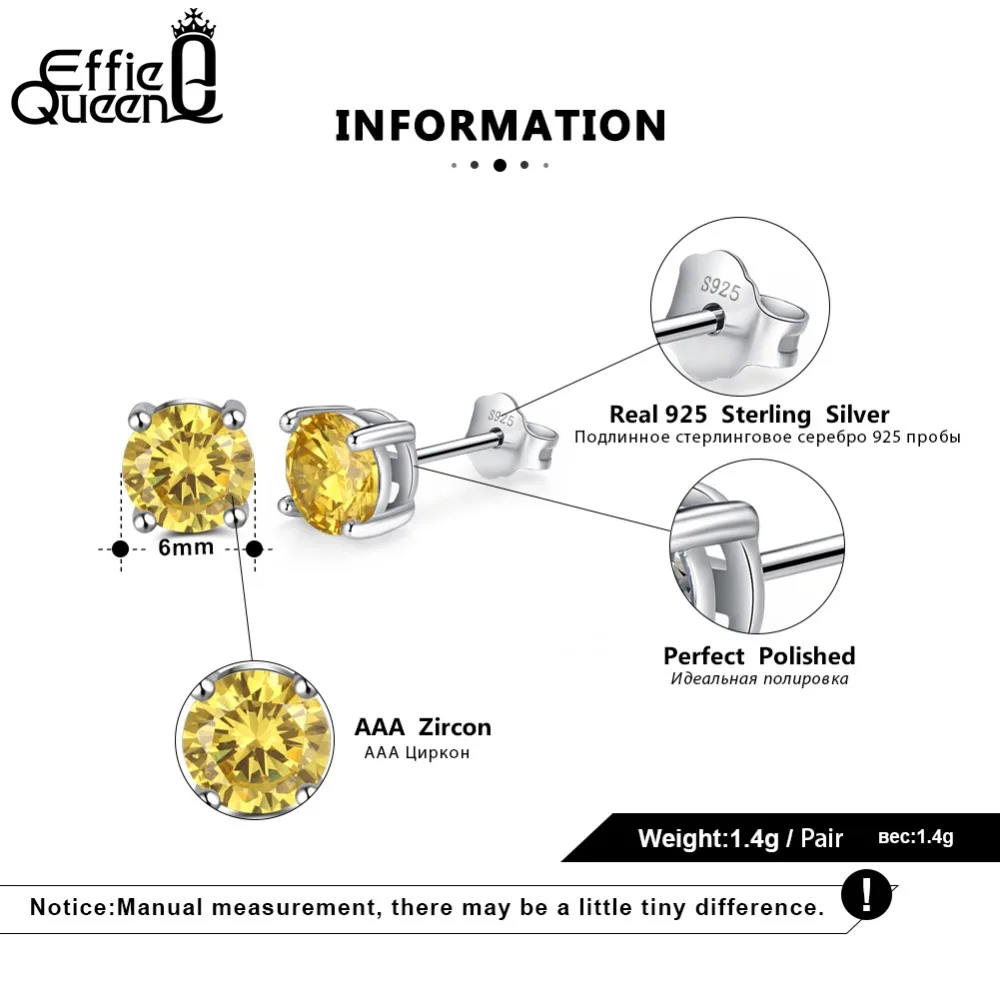 Effie Queen инкрустированные Аутентичные 925 стерлингового серебра Симпатичные маленькие серьги-гвоздики для женщин модные желтые с украшением в виде кристаллов ювелирных изделий Новое поступление BE84-Y