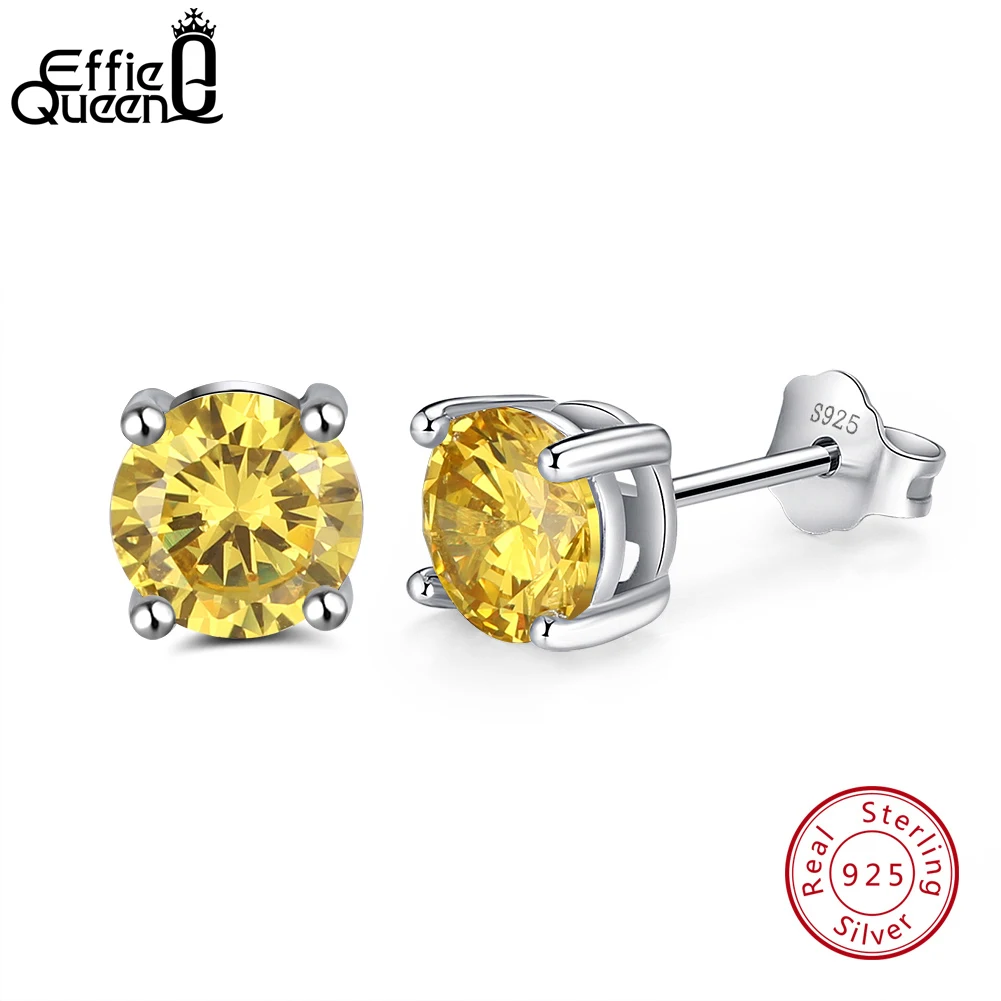 Женские серьги-гвоздики Effie Queen из стерлингового серебра 925 пробы с желтыми кристаллами, Новое поступление BE84-Y