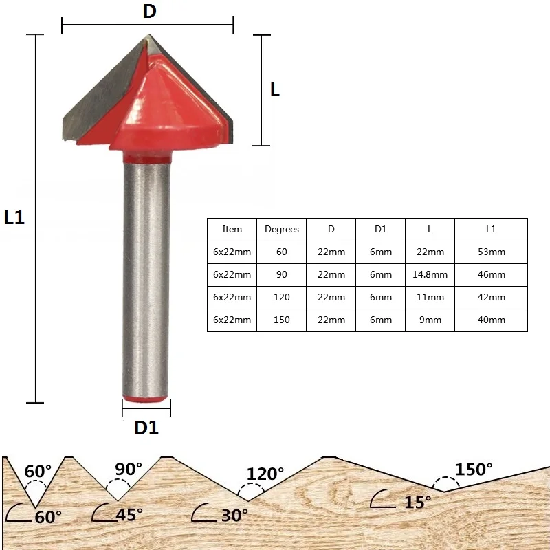 Фреза гравировальная по дереву, 6x22 мм, 6090120150 градусов, 1 шт.