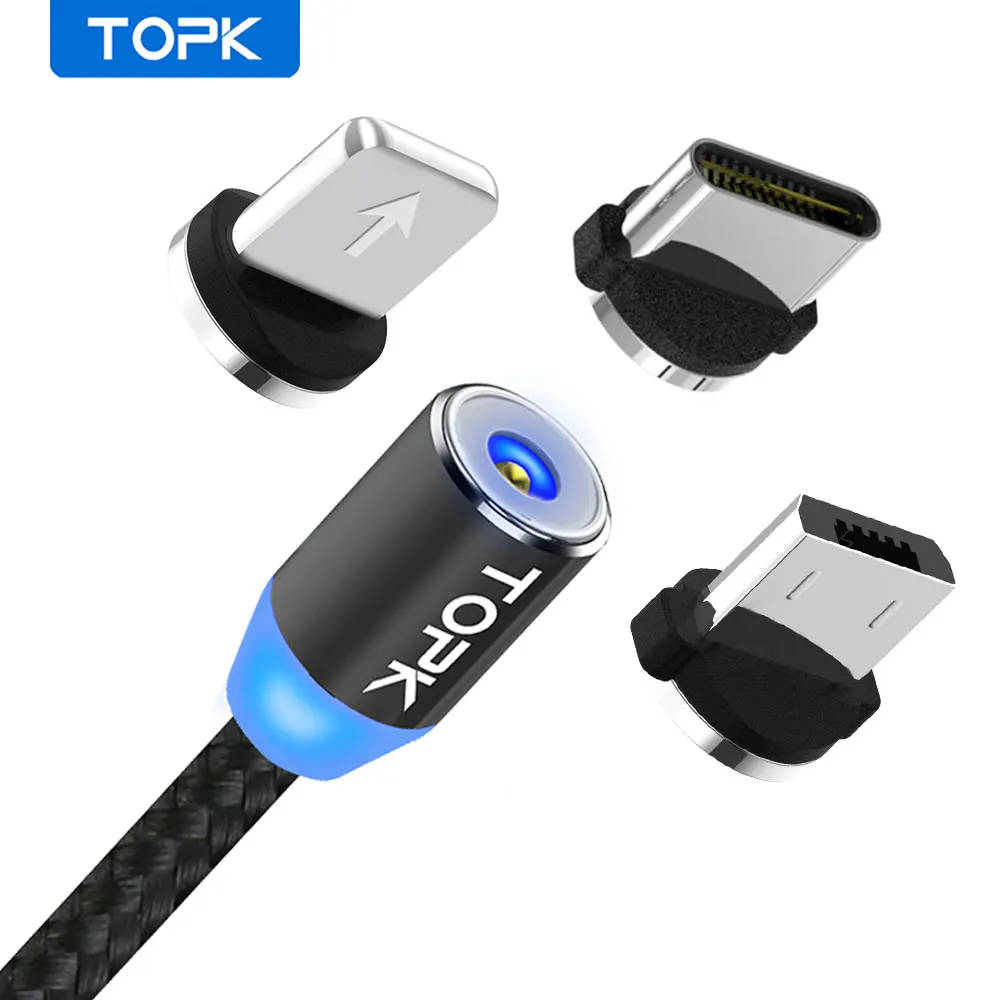Магнитный светодиодный кабель TOPK R-Line1, кабель USB Type-C и Micro USB, плетеный провод, Магнитный зарядный кабель для iPhone X 8 7 6 Plus USB-C