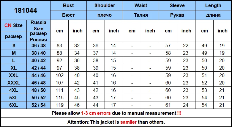 Куртка пришла очень широкая, в груди аж 130 см, талия не меньше, пришлось делать бесплатный возврат товара, деньги вернули.