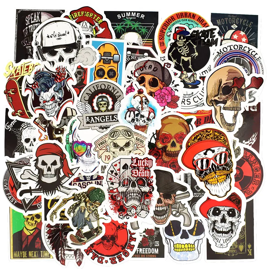 50 шт. Скелет наклейки в стиле панк рюкзаки череп рок граффити DIY наклейки для мотоцикла скейтборда гитары автомобиля велосипеда ноутбука багажа