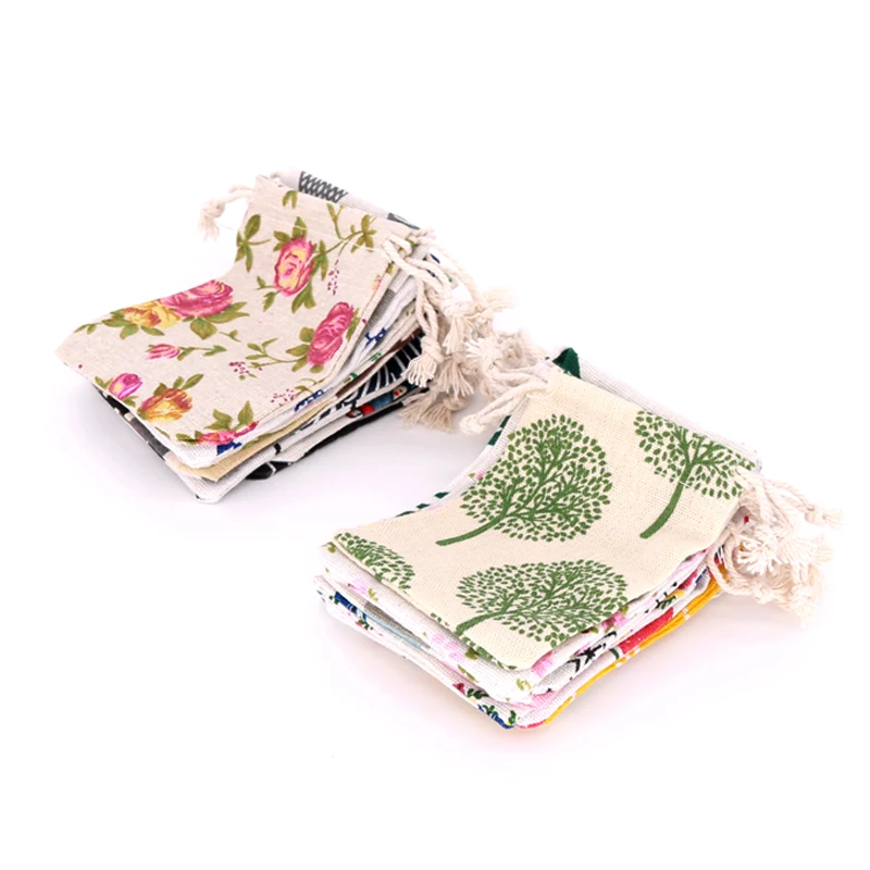 50 шт.лот (10x14 см) льняные хлопковые подарочные пакеты с принтом,...