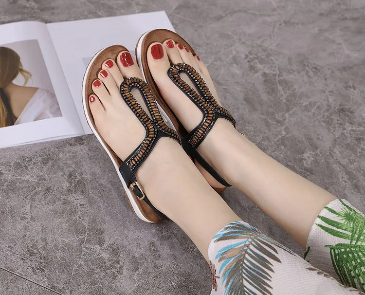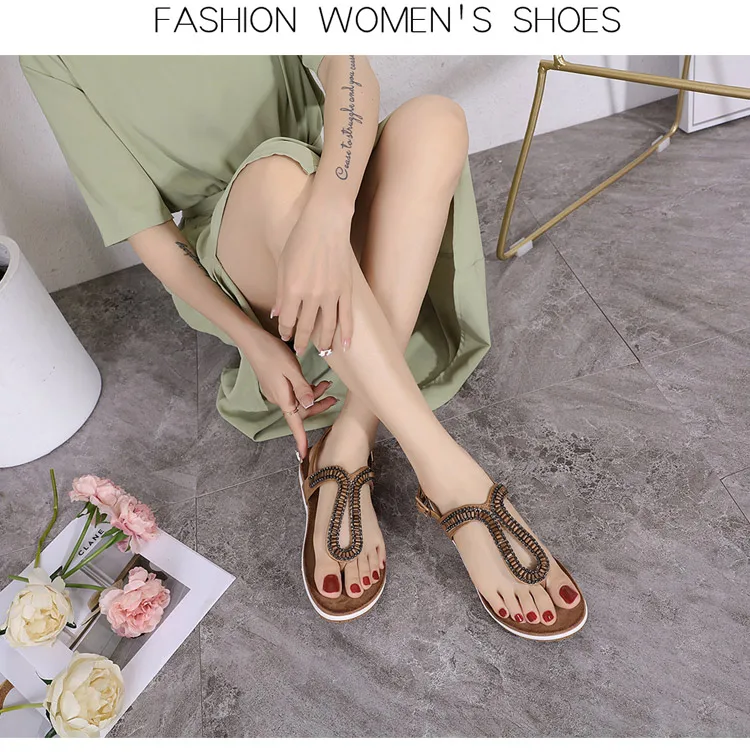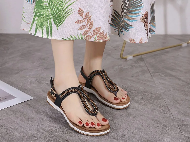 Сандалии ZZPOHE женские в богемном стиле, пляжные шлепанцы, мягкая плоская подошва, Повседневные Удобные босоножки, большие размеры 36-41, на лето