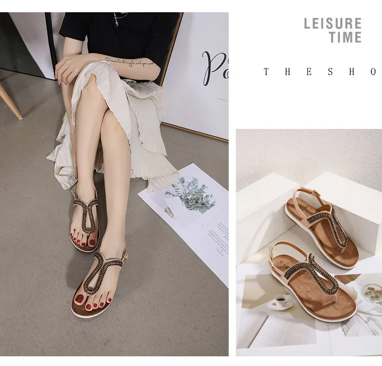 Женские босоножки в богемном стиле, этническая пляжная обувь с буси...