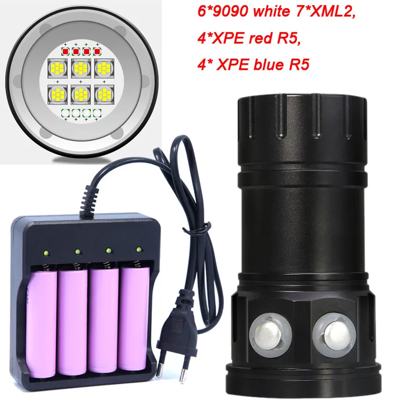 Фонарик для дайвинга 6*7 * XM-L2, фонарь 18650, подводные фонари для фотосъемки, лампа для видеосъемки, белый, красный, синий светодиодный ОД, заполняющее освещение для фотосъемки с аквалангом