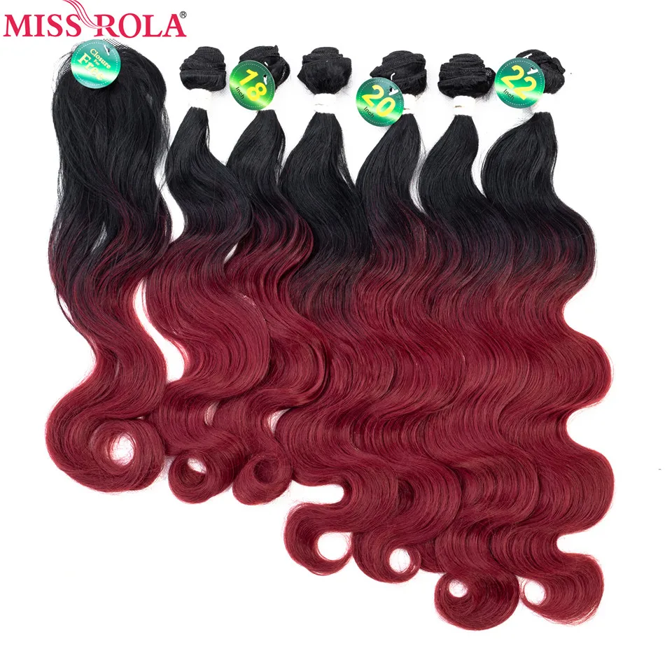 Пучки волос Miss Rola, синтетические волосы для наращивания, объемные волнистые пучки, T1B-BUG, 6 шт., 18-22 дюйма, волосы с бесплатной застежкой