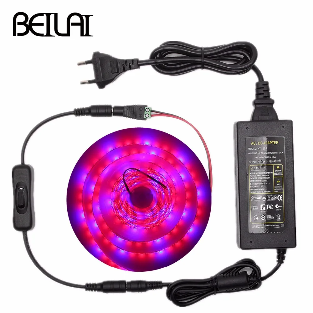 5050 Светодиодный светильник для выращивания растений, водонепроницаемая, 12 В постоянного тока, для выращивания растений, Светодиодная лента, набор с источником питания и переключателем для аквариума, теплицы