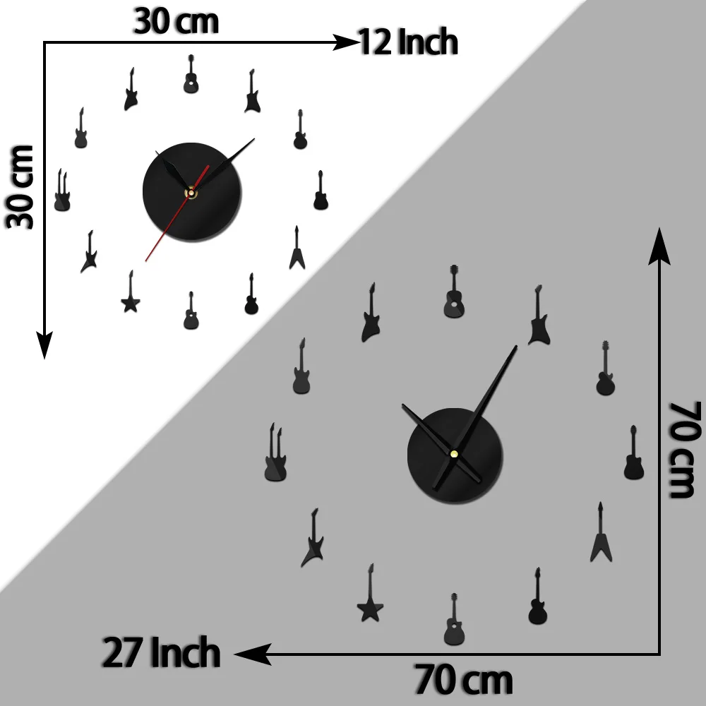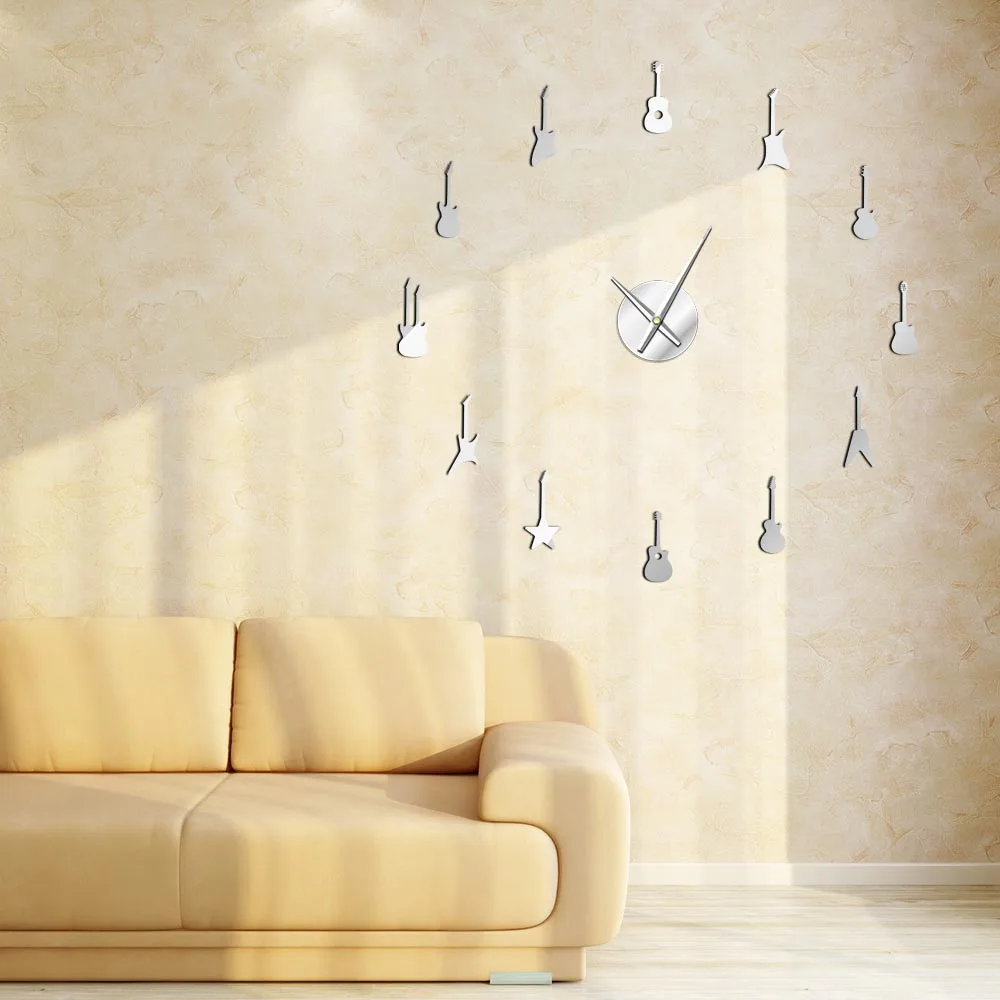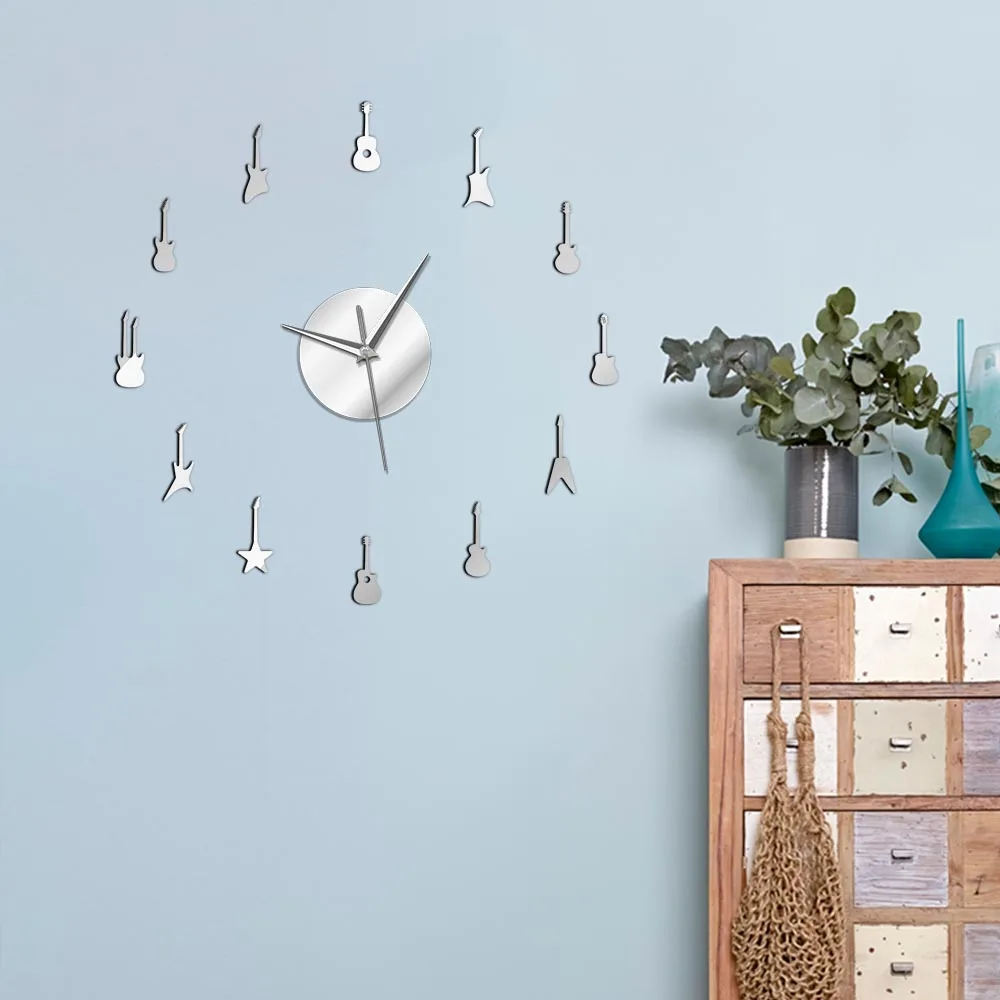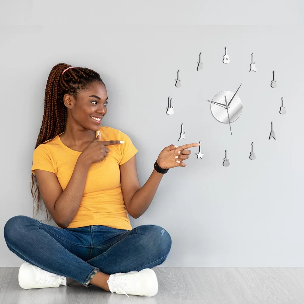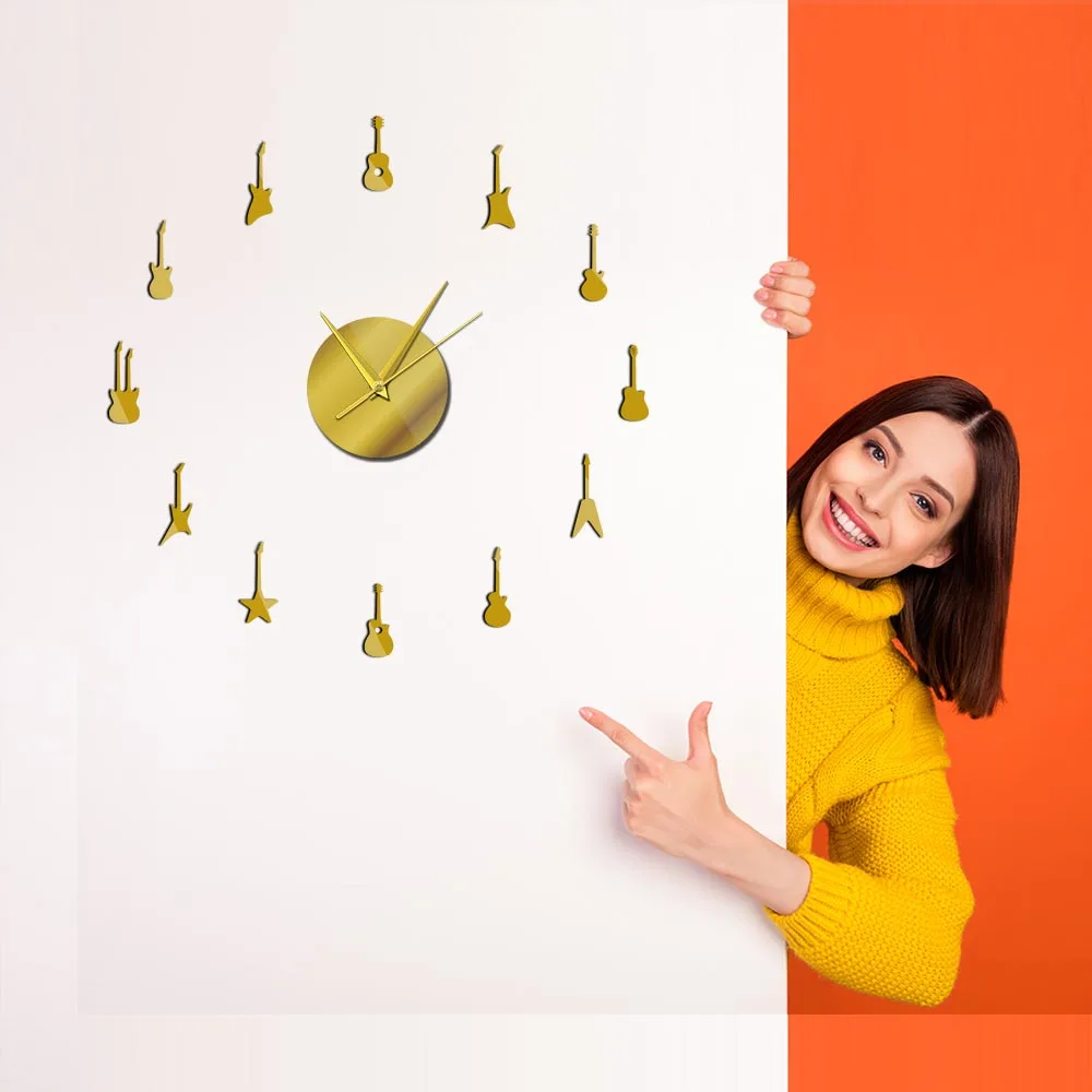 Настенные часы Rock N Roll для гитар, большие бескаркасные 3d-часы сделай сам для музыкальных инструментов, гитар, гигантские настенные часы