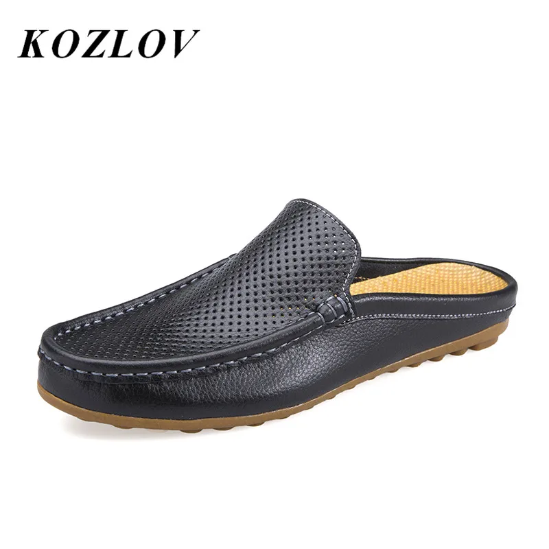 Мужские мокасины с перфорацией KOZLOV, черные повседневные лоферы из натуральной кожи, воздухопроницаемые слипоны, для лета, 2019