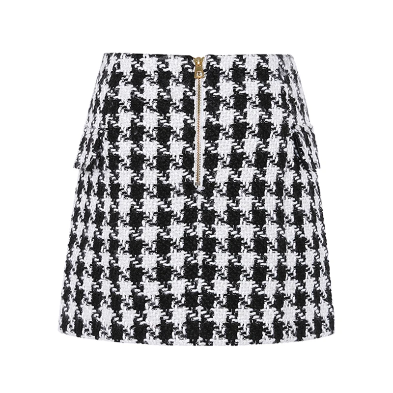 Женская твидовая мини-юбка, подиумная дизайнерская мини-юбка с металлическими пуговицами в виде льва, украшенная твидовой тканью, 2021