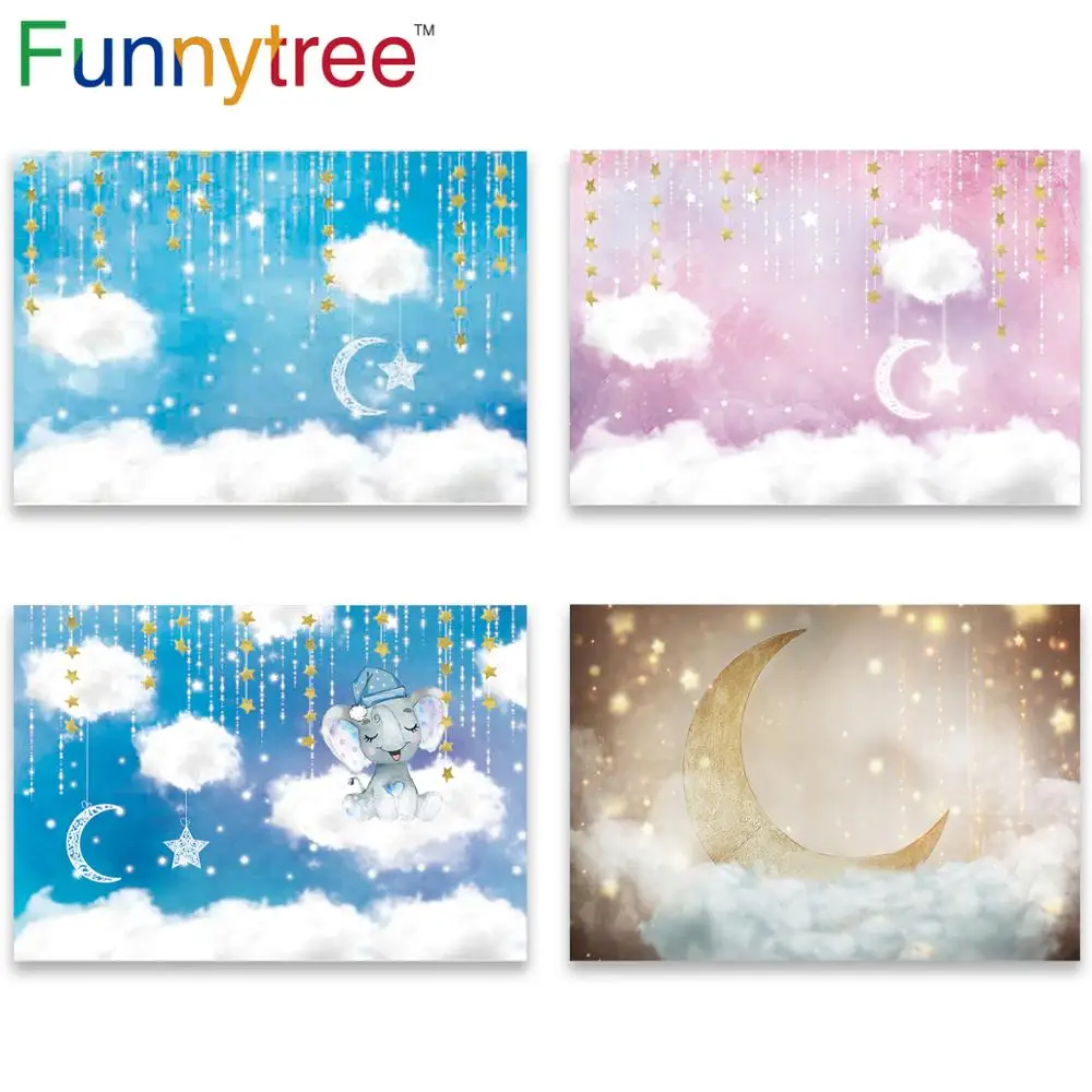 Фон для детских фотографий Funnytree, с изображением неба, Луны, облаков, сказки, звезд, дня рождения, Декор для дома