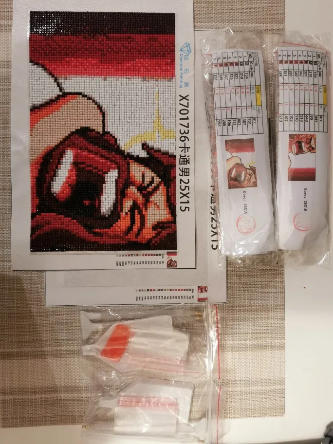 Очень доволен общением между продавцом и клиентом, заказал 14/апреля/2021 и прибыл 06/мая/2021, я заказал 2 размера 15*25, занимает около 6 часов (5900 камней на каждой фотографии), чтобы закончить один. Размер драгоценных камней довольно равен (в некоторых магазинах каждый цвет драгоценных камней немного отличается, поэтому будет выглядеть как много зазоров, но я купил в этом магазине, размер драгоценных камней не имеет проблем со мной.) Очень легко следить за порядком камней, чтобы завершить картину, зная, сколько цветов фотографий легко закончить. Обязательно закажите снова из этого магазина. Настоятельно рекомендую.
