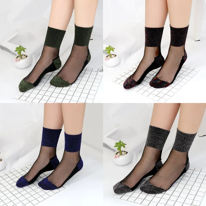 Сексуальные кружевные шелковые сетчатые носки, прозрачные тянущиеся эластичные тонкие женские носки по щиколотку, 1 пара = 2 шт., TMD03