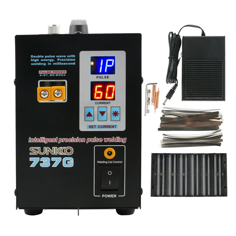 Сварочный аппарат SUNKKO, аккумуляторная машина для точечной сварки г, с двумя импульсными волнами, с двойным цифровым дисплеем, с литиевым аккумулятором 737 г