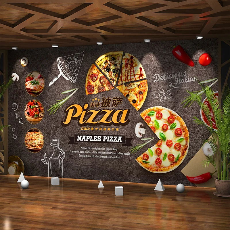 Настроить Любой Размер творческая атмосфера Еда мультфильм пицца настенной Бумага Cafe Ресторан фон декоративные росписи Бумага 3d