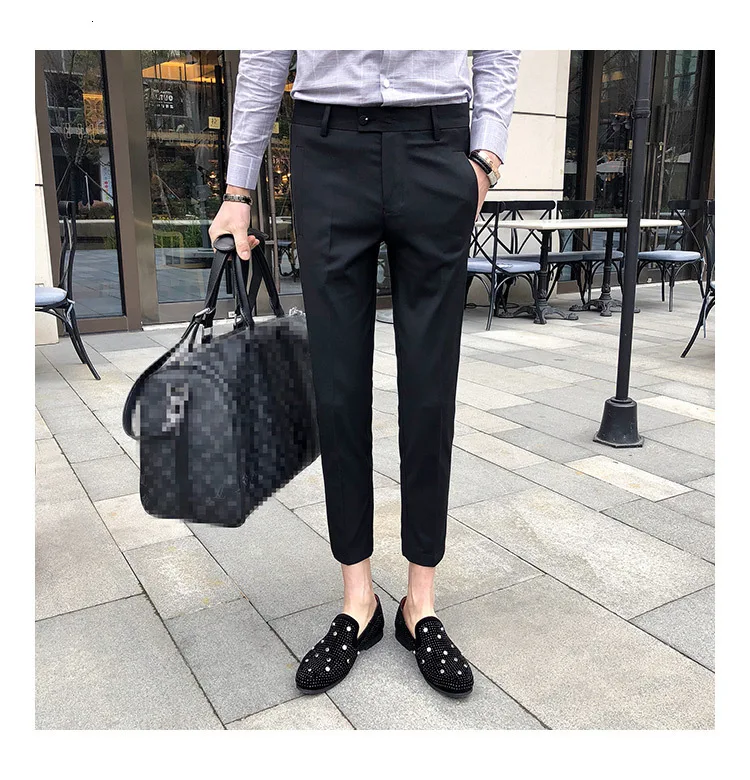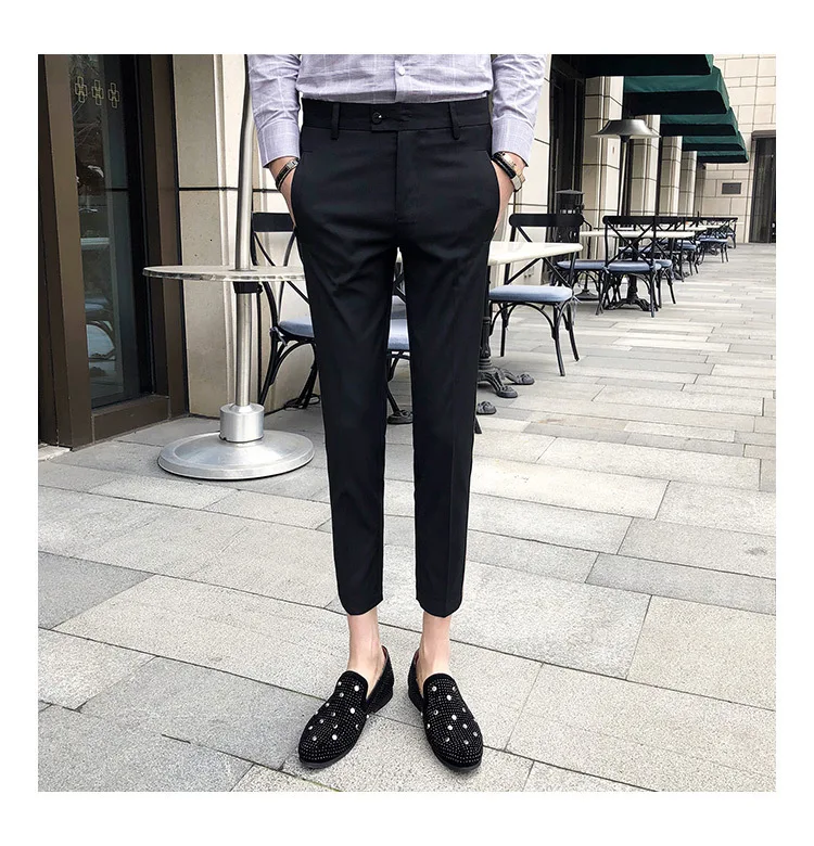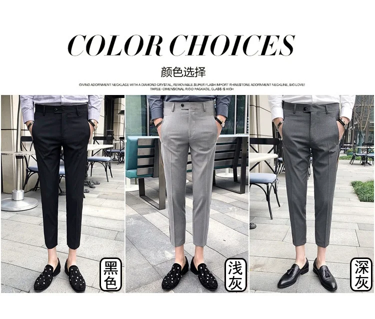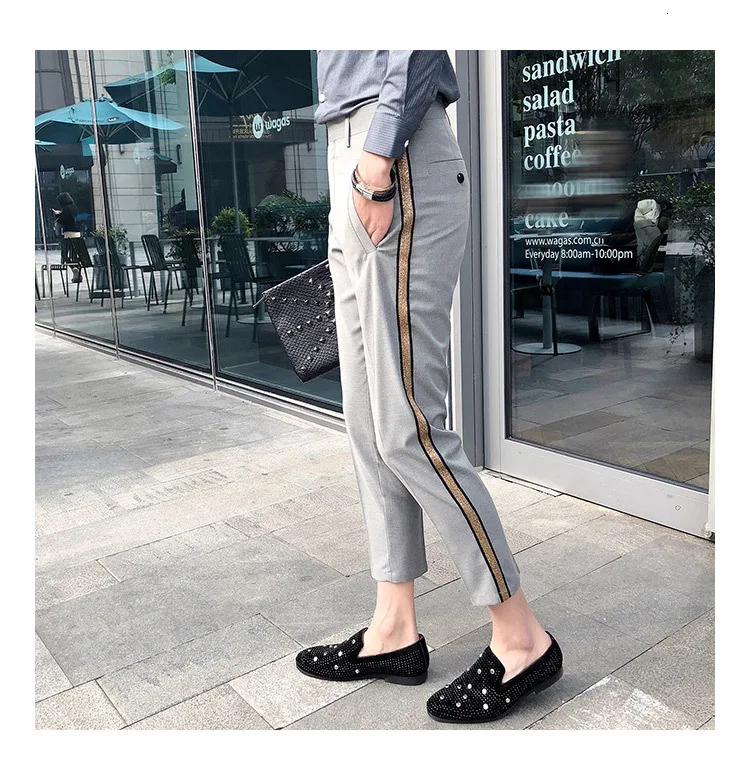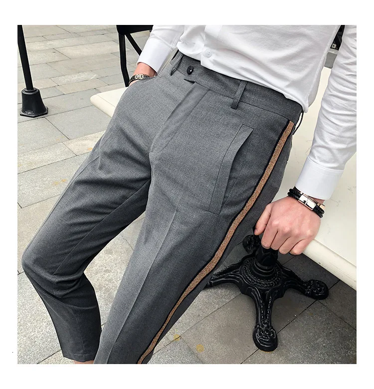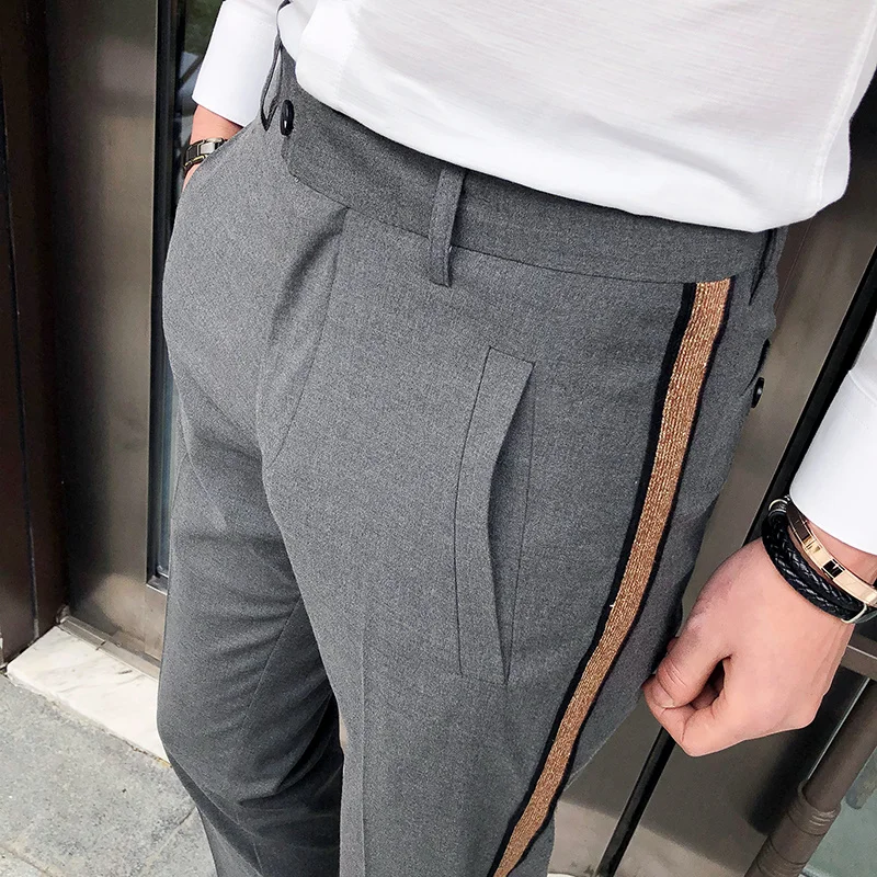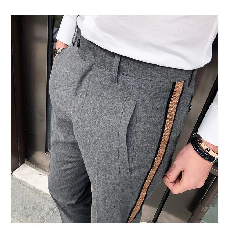 Мужские повседневные брюки с лампасами, облегающие брюки по щиколотку, 2018