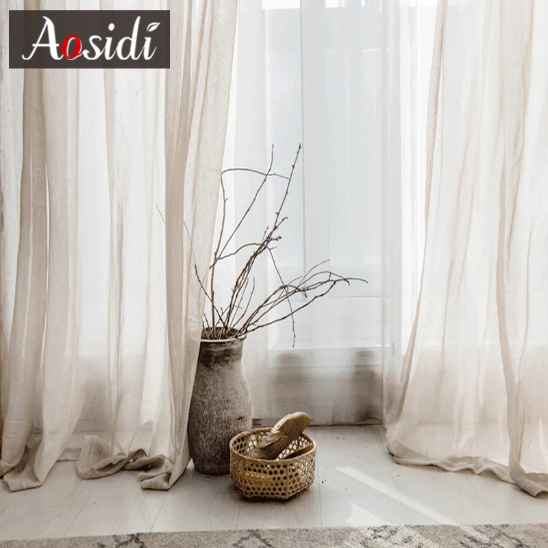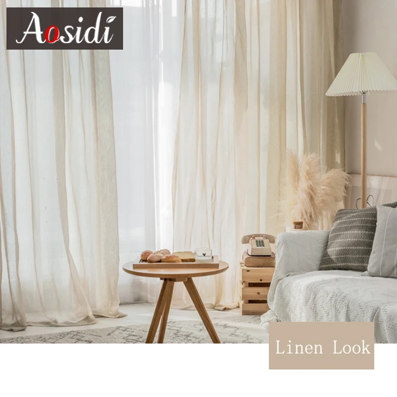Тюлевые шторы бежевого цвета для гостиной, современные льняные шторы для спальни, однотонные занавески из вуали для детской оконной занавески