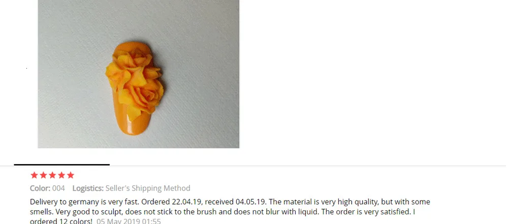 Спасибо большое продавцу, очень быстрая доставка , 20 дней и первый раз в жизни мне курьер принёс посылку из Китая на дом,правда посылка почему-то вообще не отслуживалась . Пластилин ещё не пробовала, но по внешнему виду хорошей консистенции.