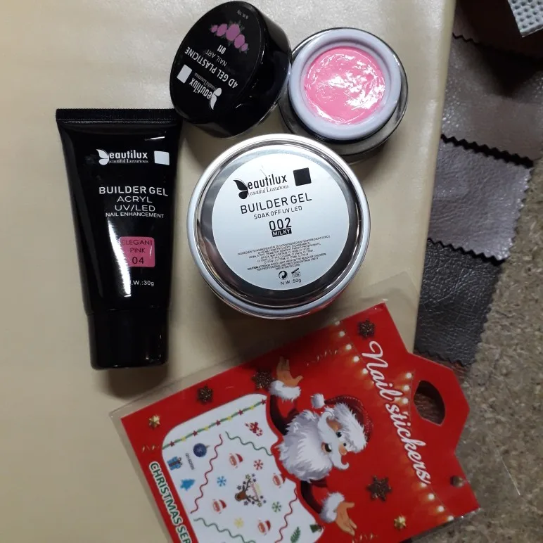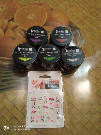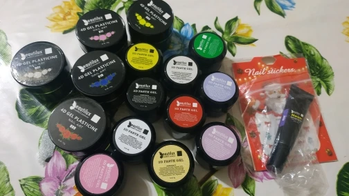пришло всё чётко,что и заказывала,ничего не напутали.по консистенции глина густая,бери и лепи что хочешь,гель в меру густой,акригель тоже густой.опробую в деле,дополню отзыв.продавцу спасибо,за молниеносное отправление и наклейки в подарок