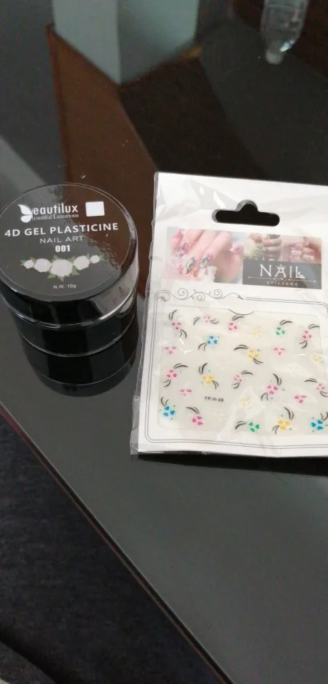 Продукция, конечно дорогая, но хорошая. Пластилин просто божественный. Не прилипает к силиконовой палочке, мягкий, может, конечно , потому что свежий.. )). Наполнение баночек отличное! Может, конечно, есть второе дно.. )). также продавец положил подарки - наклейку к каждому заказу и гель для стэмпинга. )) Попробуем).