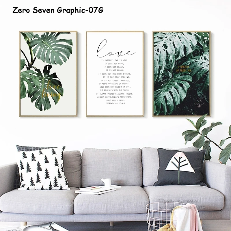 Северное декоративное зеленое растение с английской монстерой, Картина на холсте, постеры и принты, художественные настенные картины, декор для гостиной и дома