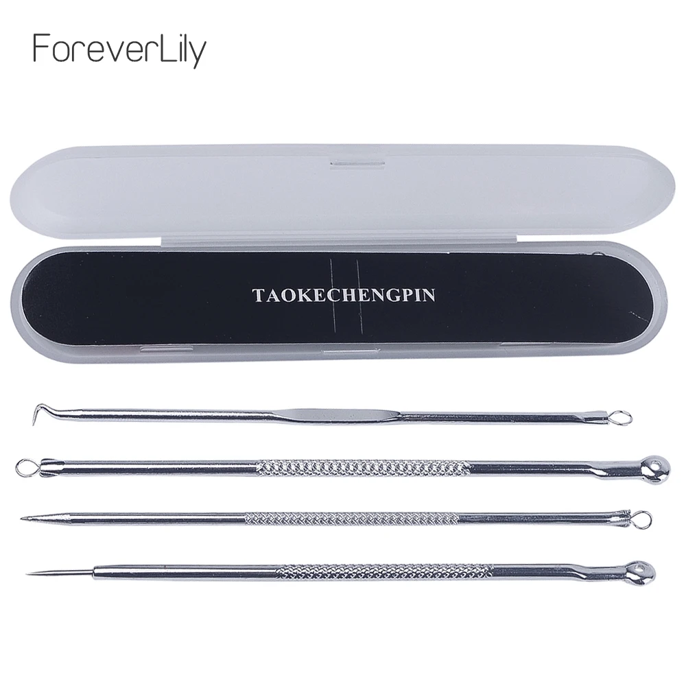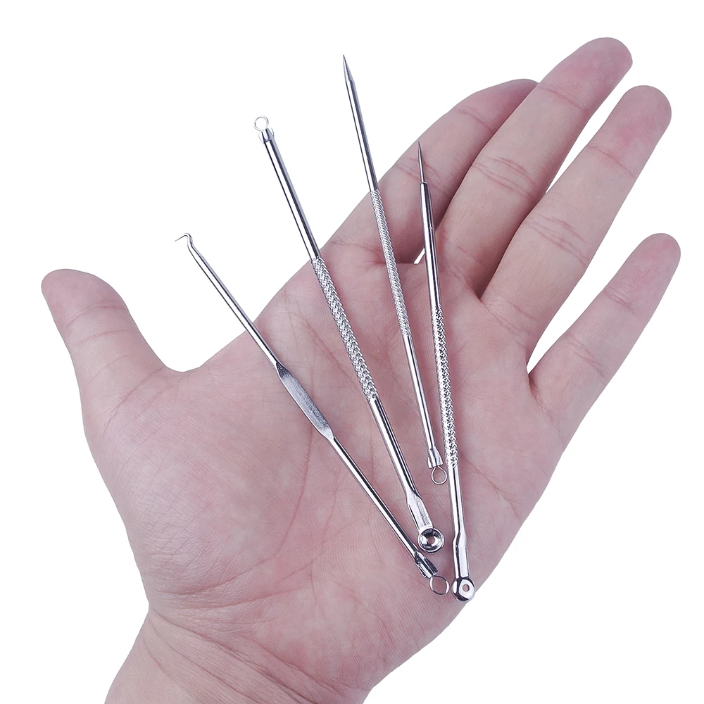 4 шт., игла для удаления угрей, прыщей, экстрактор угрей и комедонов, набор инструментов для удаления пор, очищающие средства для лица