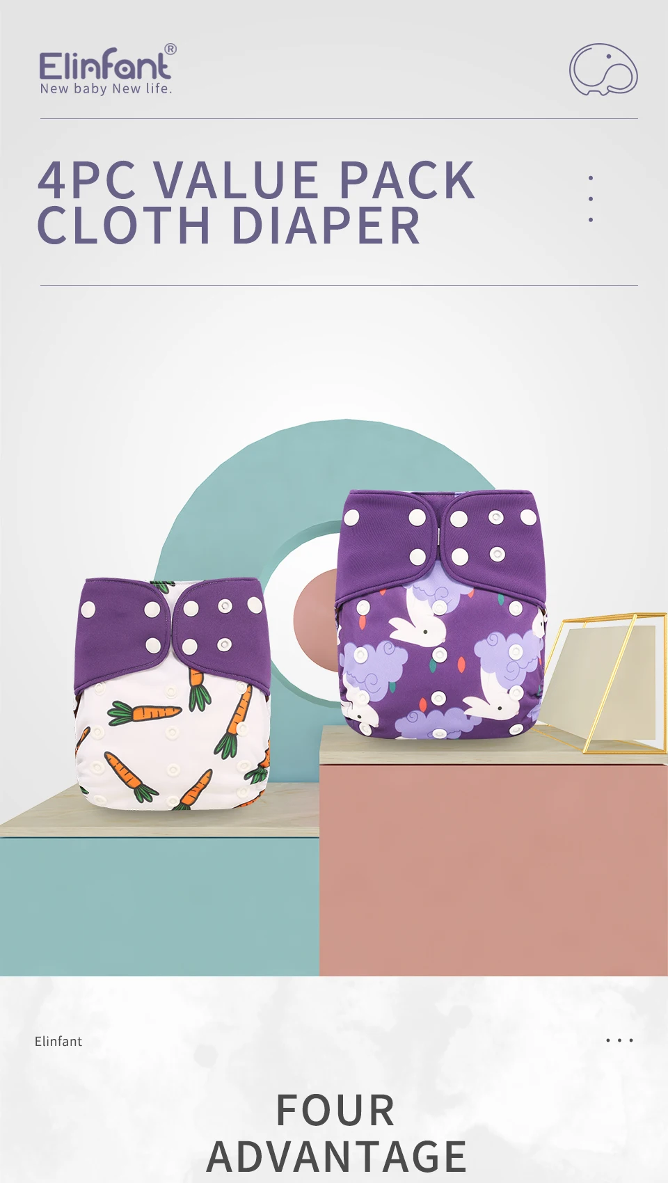 Набор из 4 предметов, замшевые подгузники Elinfant, быстросохнущие,...