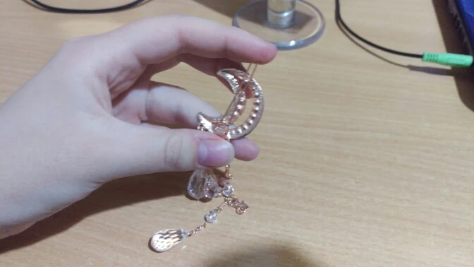 Товар нравится. Такая милая заколка для волос. Выглядит так же, как на фотографиях, очень хорошо, чтобы прикрепить прическу и сделать ее стройной!