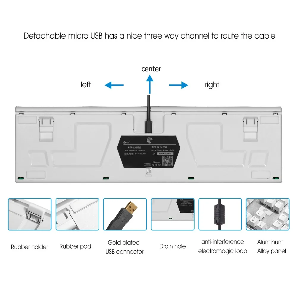 Игровая клавиатура Eagle Z-88Mechanical, тактильные коричневые переключатели, RGB-подсветка, алюминиевая компактная эргономичная белая клавиатура с 104 клавишами