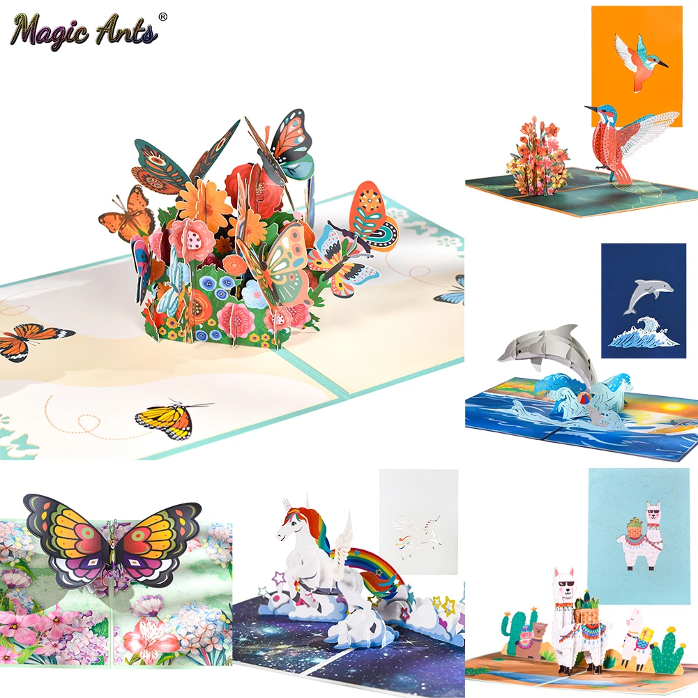 Открытка Детская на день рождения с 3d-бабочкой, единорогом, милыми животными