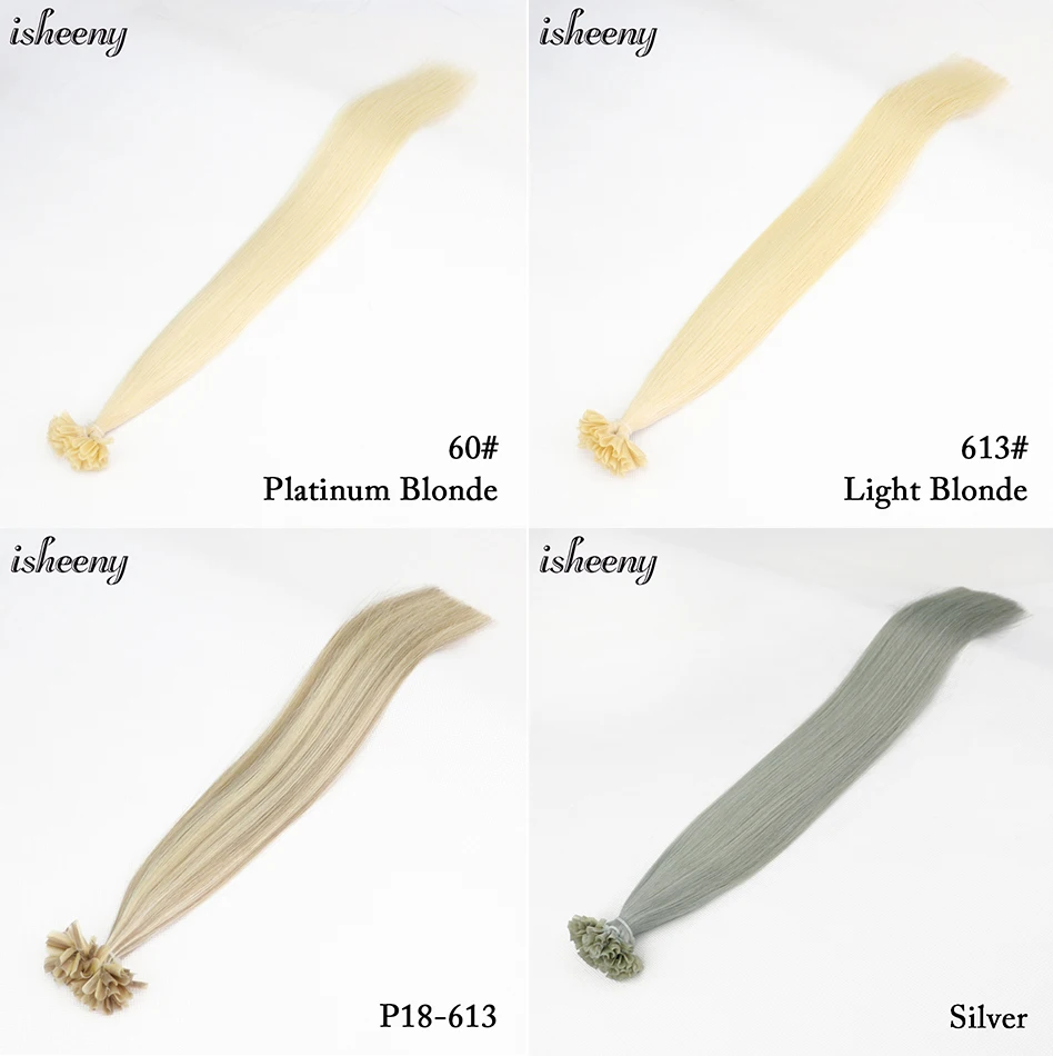 Isheeny, 12 дюймов, 14 дюймов, 18 дюймов, 20 дюймов, 22 дюйма, накладные волосы, Remy, u-образные, прямые, предварительно склеенные человеческие волосы
