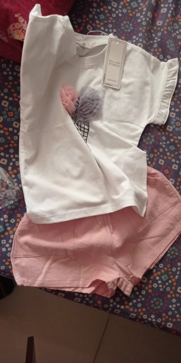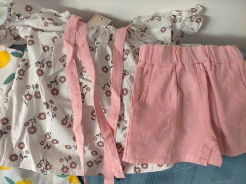 хороший костюмчик,шортики бежевые не белые,ребенку 1.2 брала на вырост