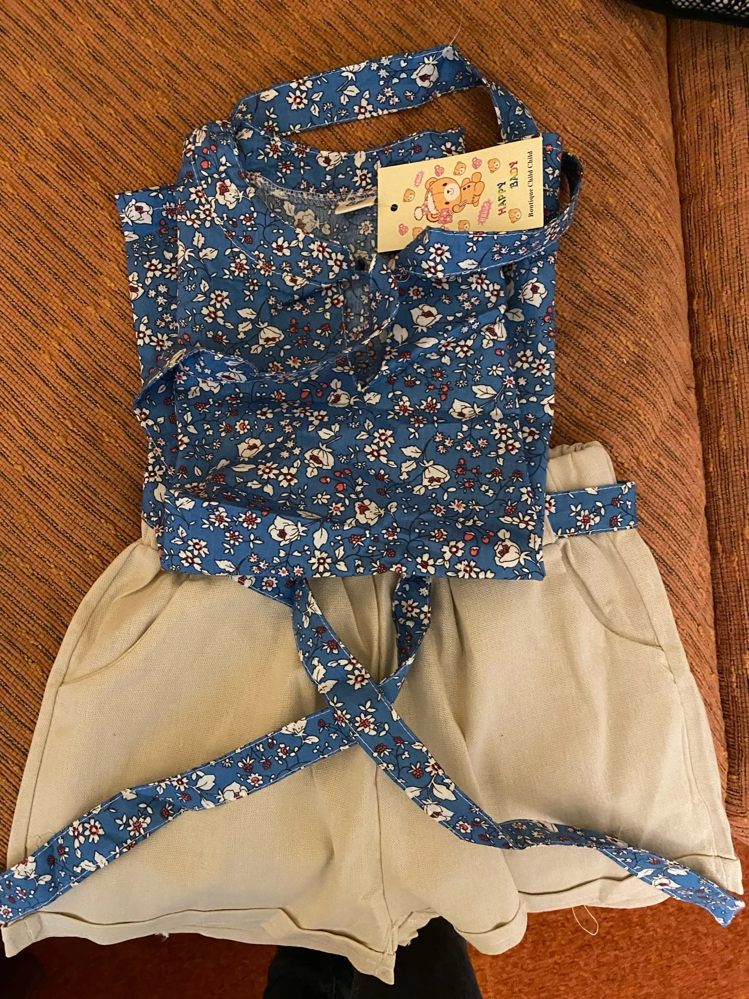 Доставка во Францию примерно за 1 месяц. Наряд красивый. Нет запаха. Для ребенка около 15 месяцев, 12кг и около 80cms я взял размер 4. Это прекрасно. Шорты с дефектом, они полностью сшиты сзади внутри. Резинка видна. Слишком плохо. Хорошее общение с продавцом