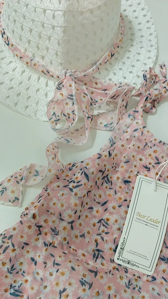 Блузка и шорты для девочек Bear Leader, комплект летней детской одежды, шифоновая блузка на бретельках с вышивкой и шорты, шляпка, 2019