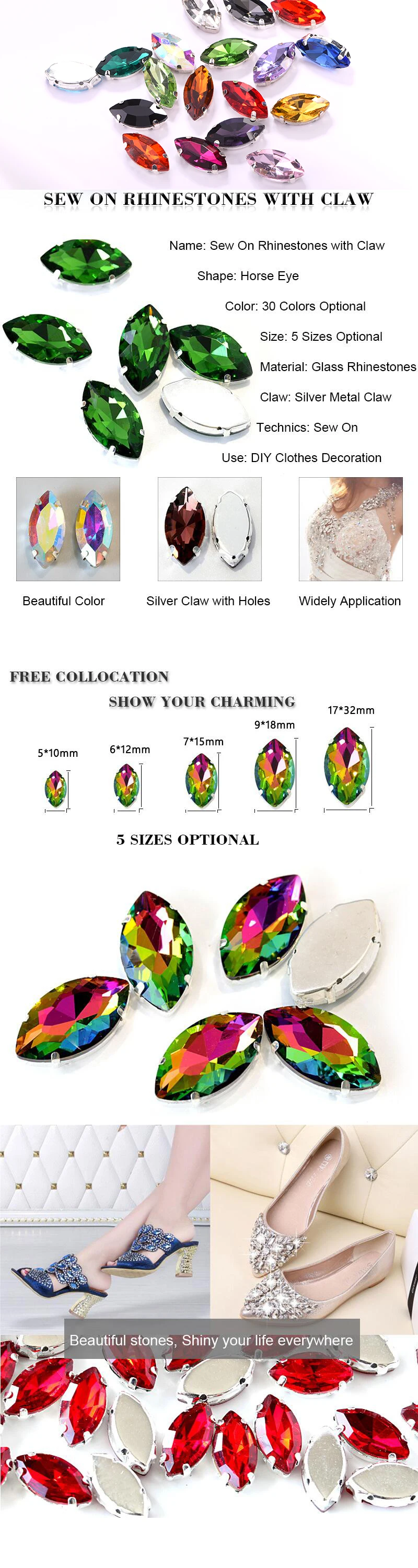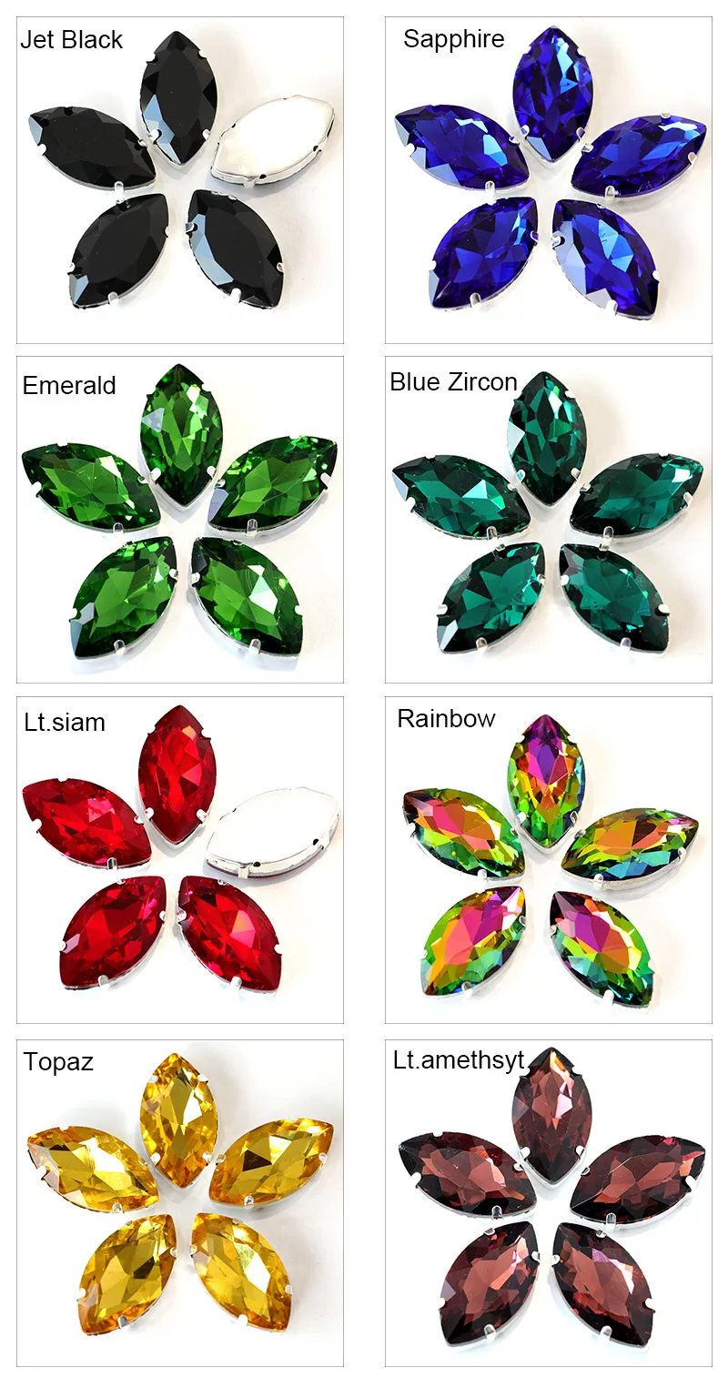 Стразы для пришивания, в форме конского глаза, 38 цветов, 5 размеров