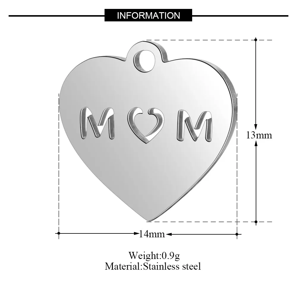 Fnixtar 316L нержавеющая сталь мама сердце буквы металлический куло...