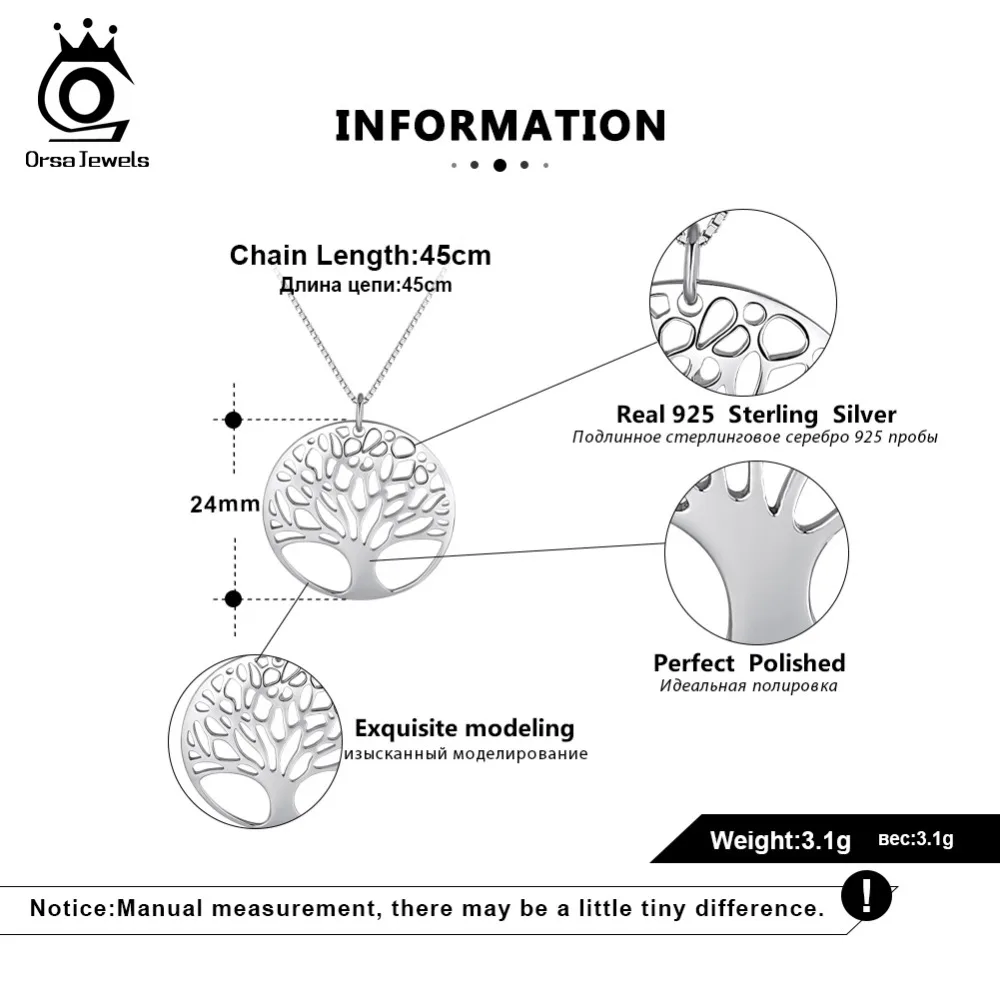 ORSA JEWELS Настоящее серебро 925 пробы женские ожерелья идеальная полировка изысканный кулон Древо жизни Модные женские ювелирные изделия SN90
