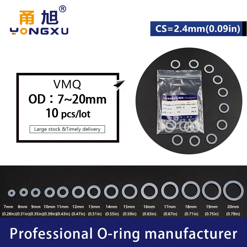 Уплотнительное кольцо VMQ, 10 шт., уплотнительная прокладка CS2.4mmOD7891011121314151617181920*2,4, силиконовая резина, водонепроницаемая шайба, Нетоксичная, белая