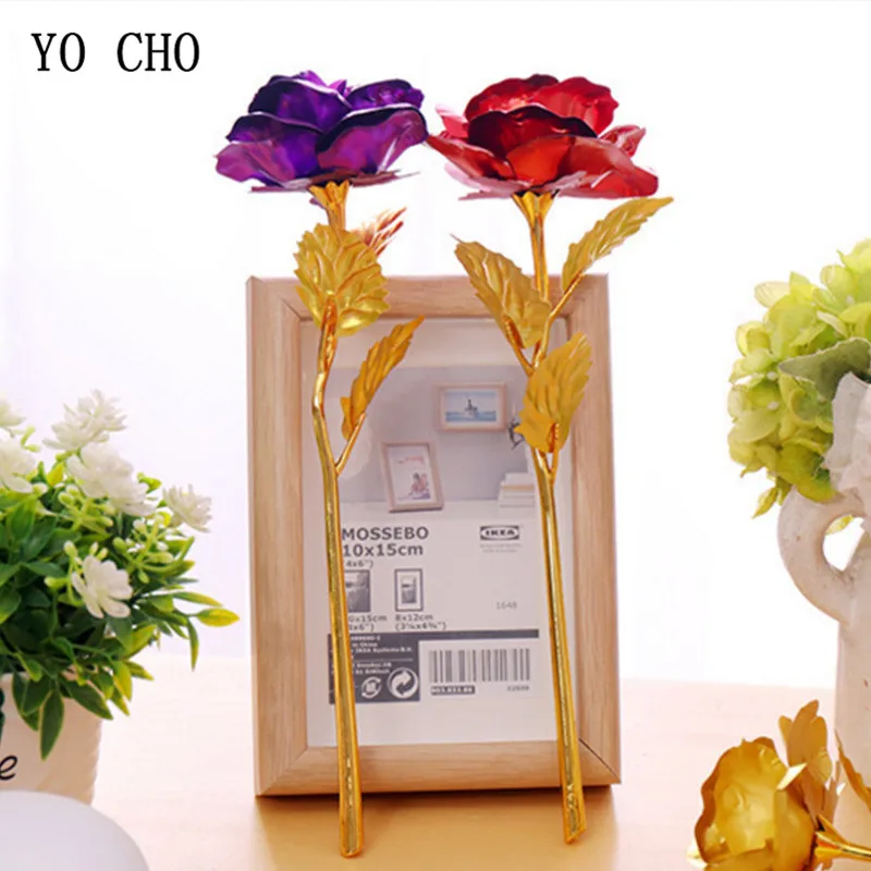 Йо Чо 24 к Золотая фольга розы Искусственные цветы украшение для дома День матери большие цветочные головки со стеблем Подарок на годовщину
