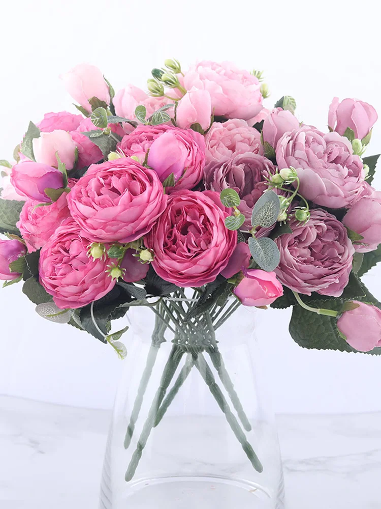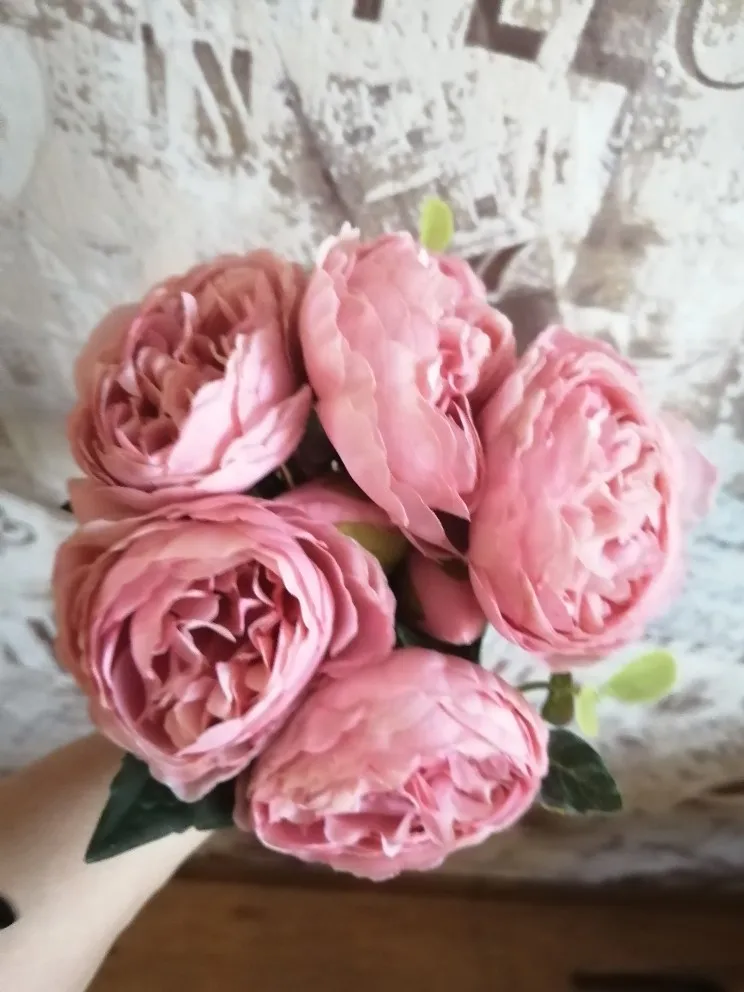Розовые шелковые искусственные пионы, букет высотой 30 см из 5 больших цветков и 4 закрытых бутонов, недорогие искусственные цветы для украше...