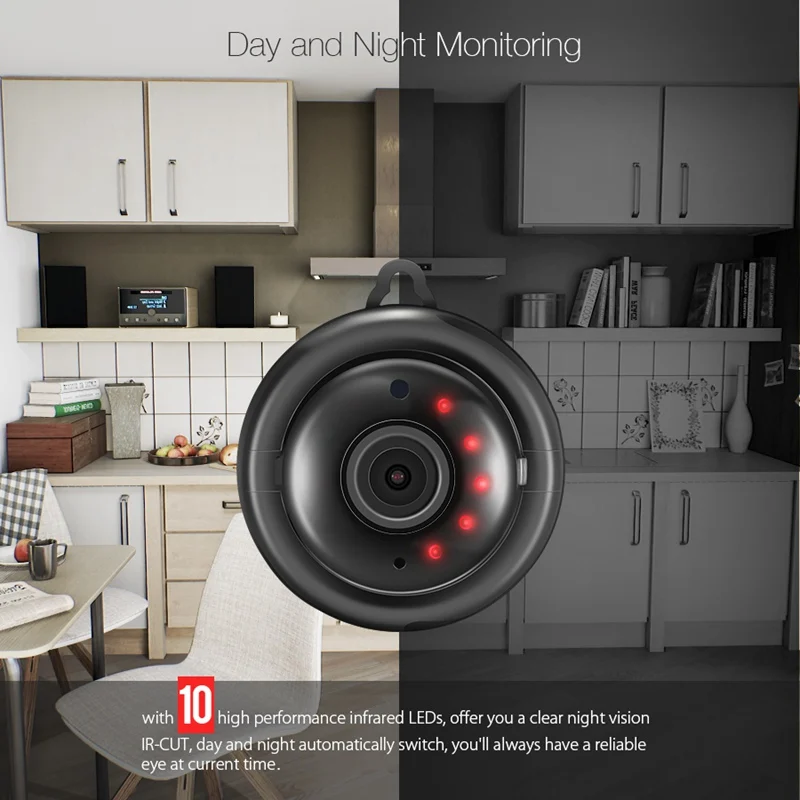 - 720p+ 2,1 ммСупер широкий объектив + Беспроводное Wi-Fi соединение +110 ° Угол обзора +10 шт.ИК светильник-