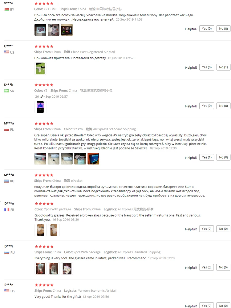 Пришла посылка до Хакасии примерно за месяц. Протестировал , всё хорошо со своими задачами справляется , заказывал версию Y2HD 568 games с батарейками. Нормальных игр с детства соберётся с десяток все остальное так себе не интересно . Заказывать стоит если уж вы ярый фанат ретро игр. Мне за вечер надоела эта приставка, ребенок после телефонных игр особо не оценил , в пару игр в месте по играли. пока лежит на полке ..
