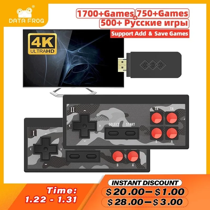 Data Frog USB Беспроводная портативная ТВ-видео игровая консоль со встроенным 1700 NES 8 бит HDMI-совместимая Ретро денди игровая приставка 4K с двумя геймпадами