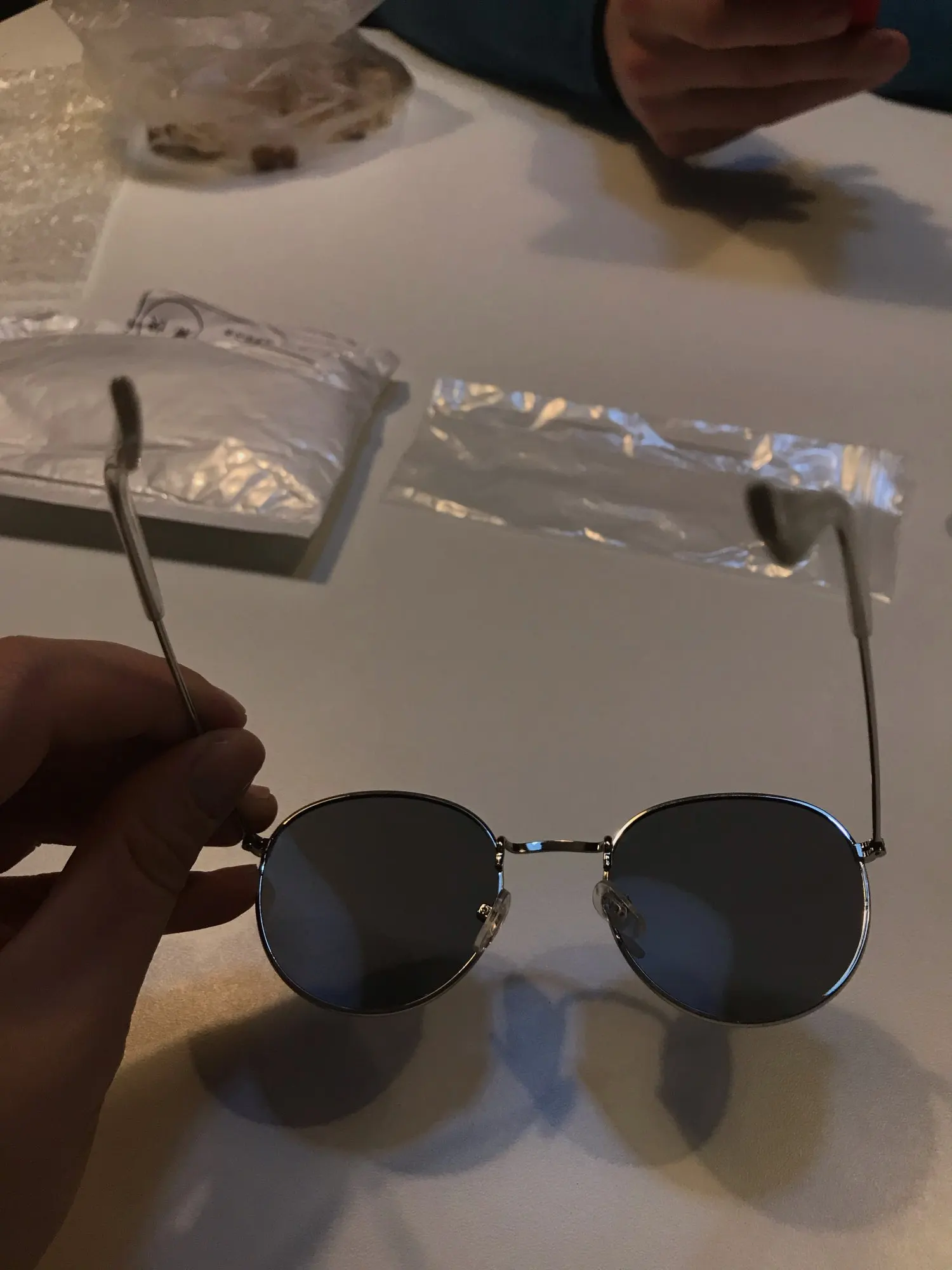 Очки пришли очень быстро в Краснодар за две недели, были объеденины с другим заказом, с отметкой быстрая доставка. Упакованы в пупырку пришли в целости, без царапин. Маловаты, но у меня лицо узкое мне подошли, смотрятся хорошо. По качеству конечно ооочень хлипенькие, но за такие деньги пойдёт. Рекомендую товар и продавца. Спасибо))