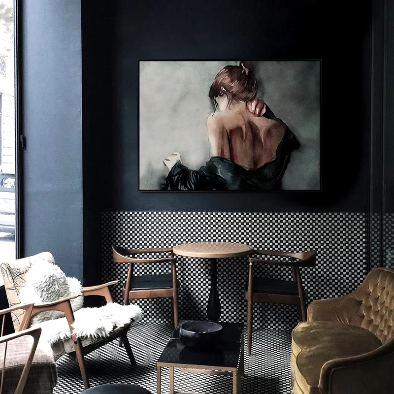 Монохромная Картина на холсте, плакаты для девочек и печать, Картин...