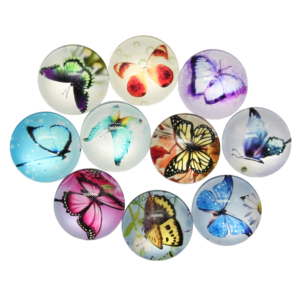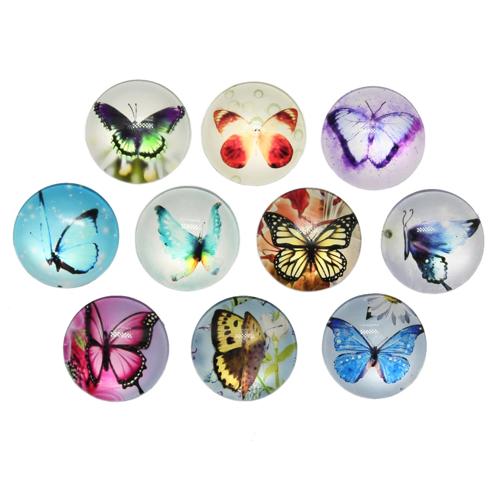 Новинка, модные смешанные кабошоны с бабочками ручной работы, 10 шт., 25 мм, стеклянные украшения для рукоделия, изготовление ювелирных украшений
