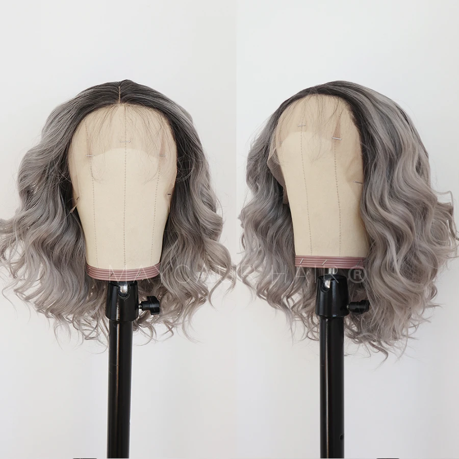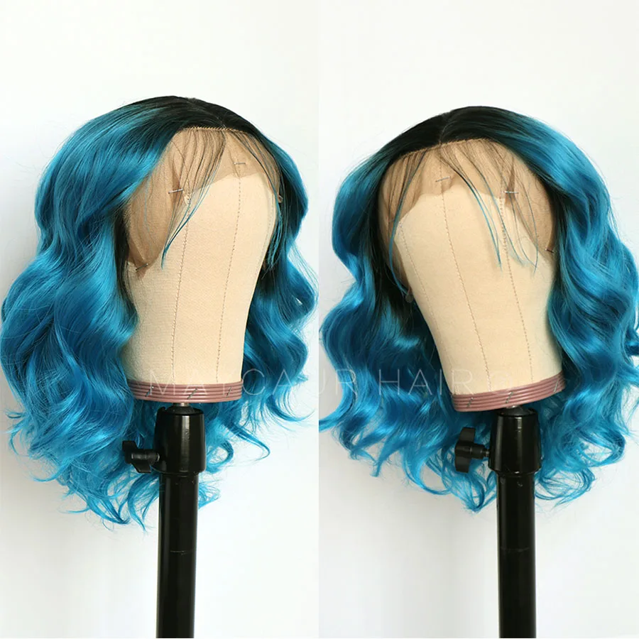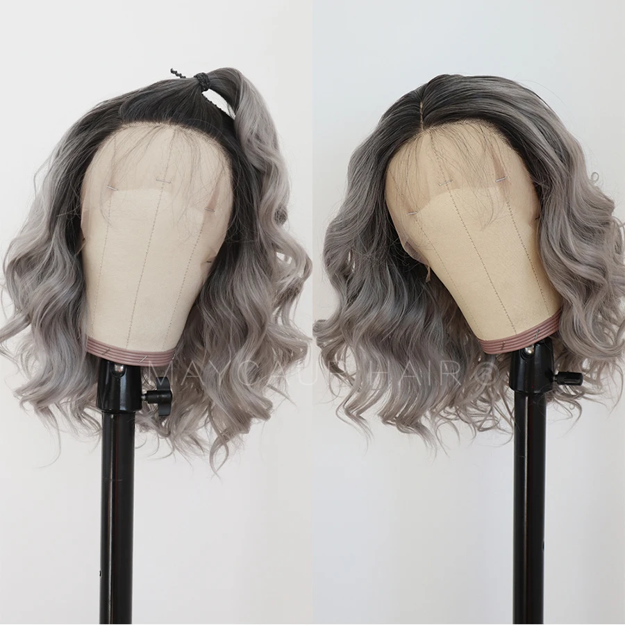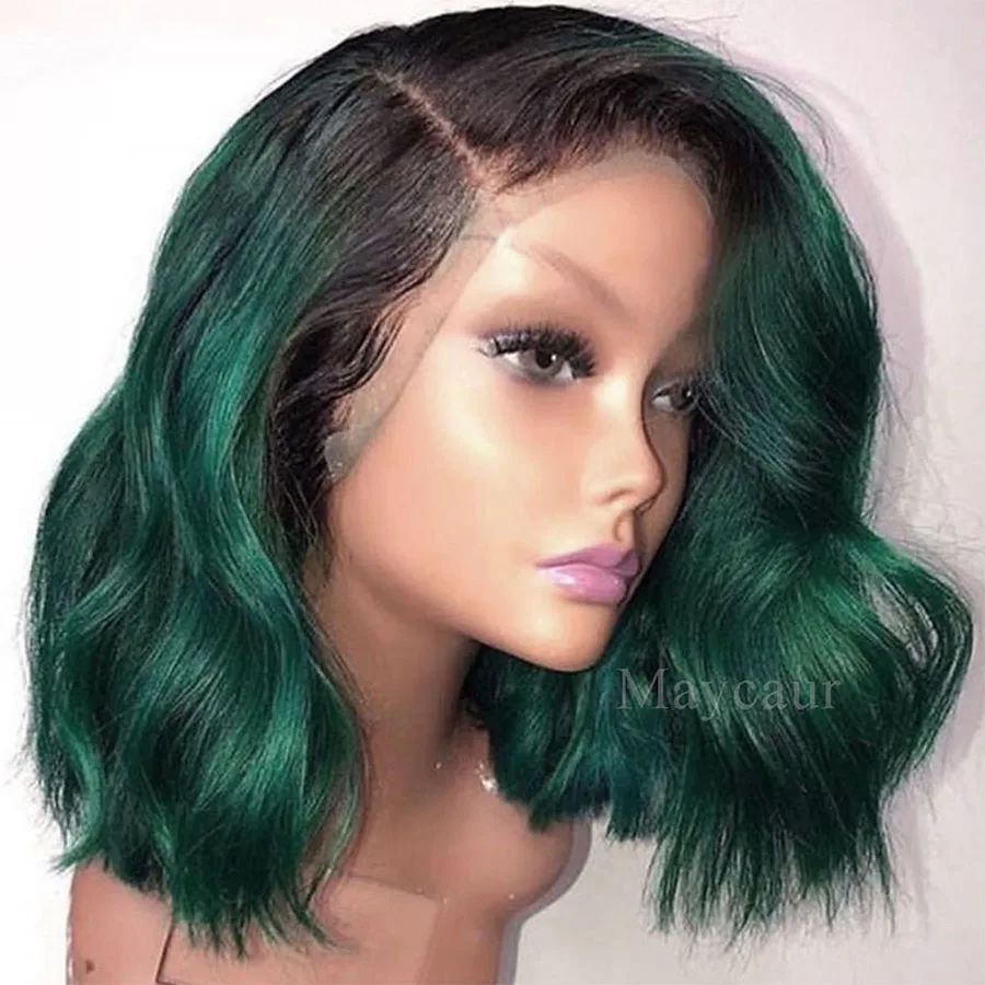 Зеленые 2 тона с эффектом омбре, наполовину связанные вручную синтетические парики на фронтальной сетке, термостойкие волосы с темными корнями, Короткие Волнистые Сменные парики для женщин