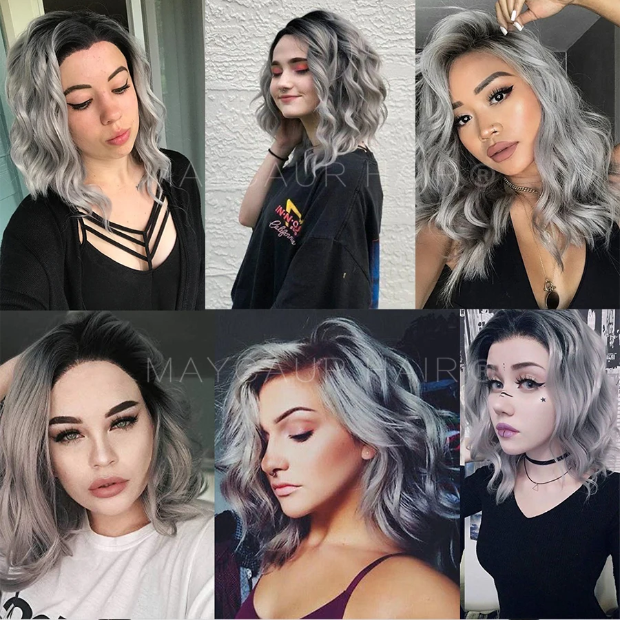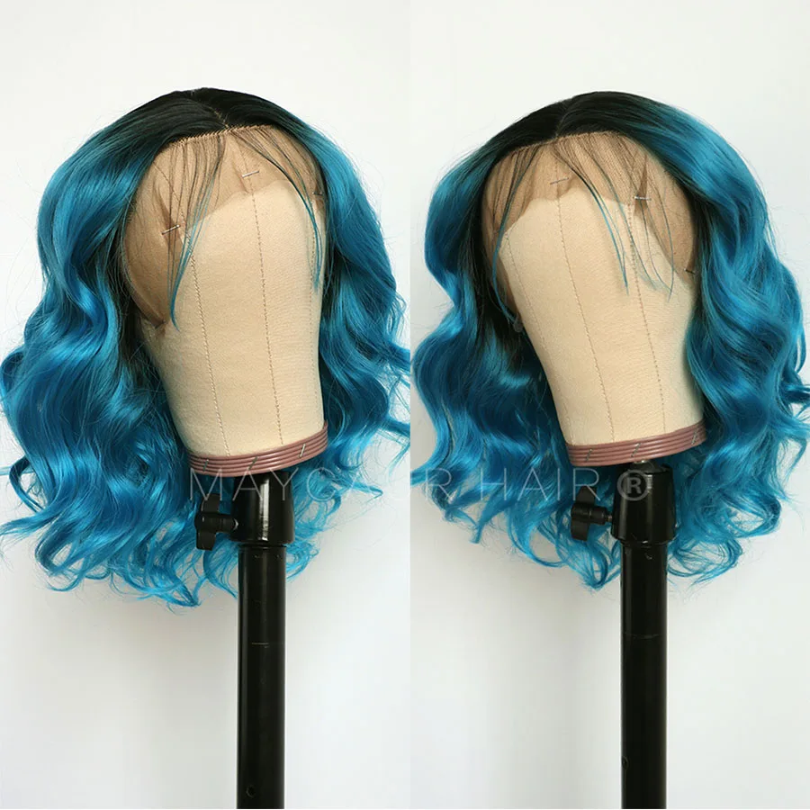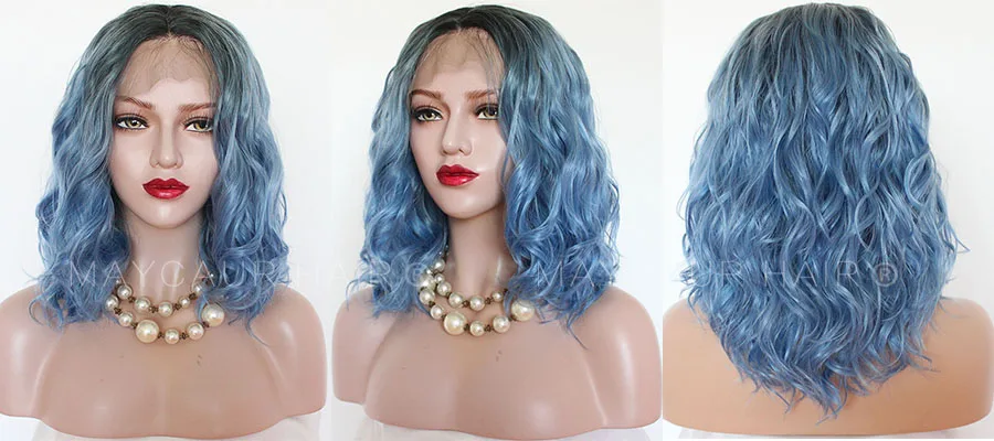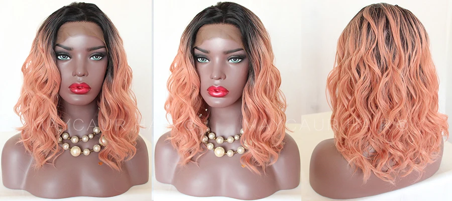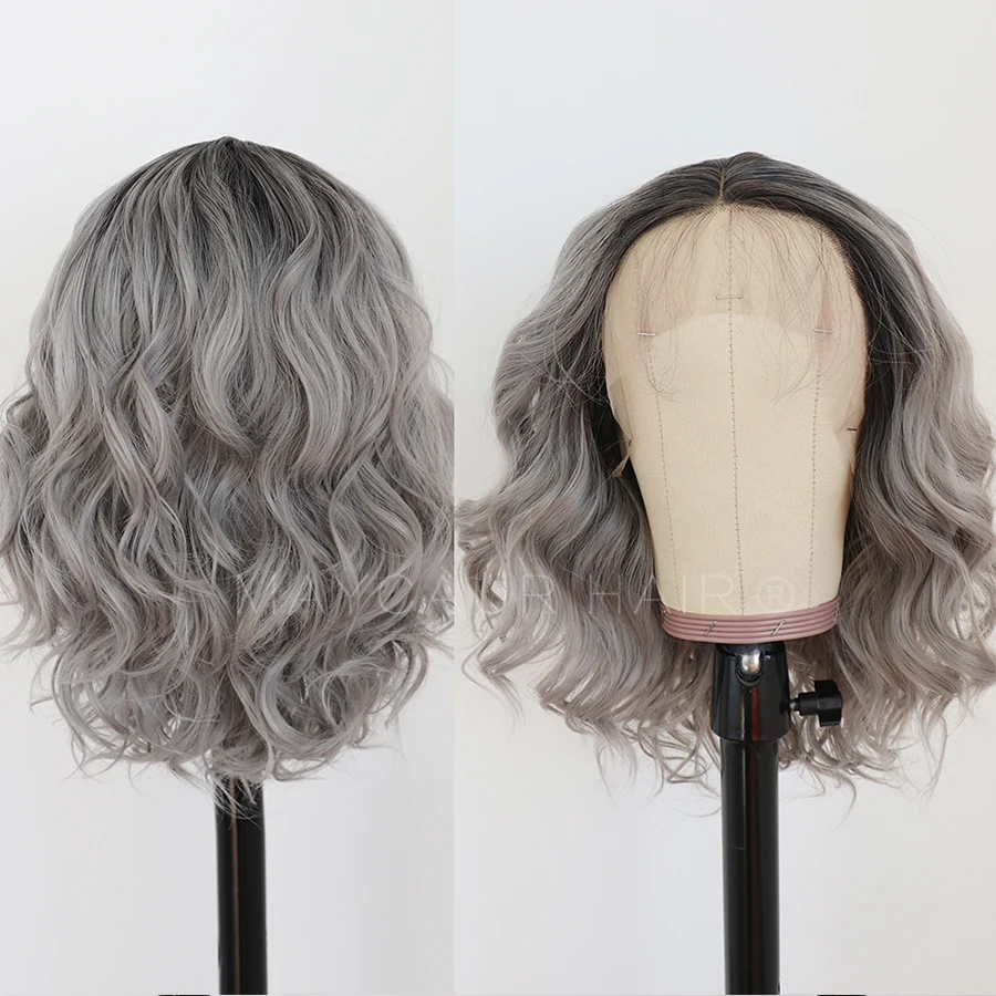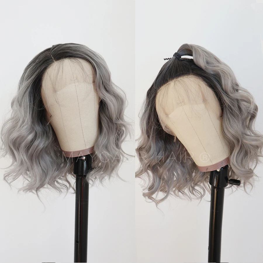 Зеленые 2 тона с эффектом омбре, наполовину связанные вручную синтетические парики на фронтальной сетке, термостойкие волосы с темными корнями, Короткие Волнистые Сменные парики для женщин